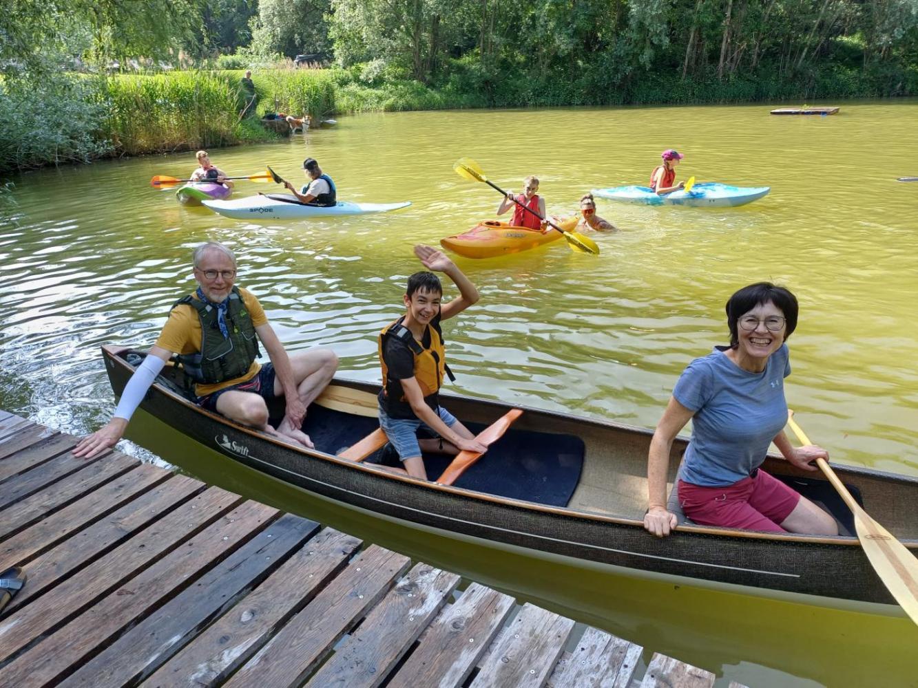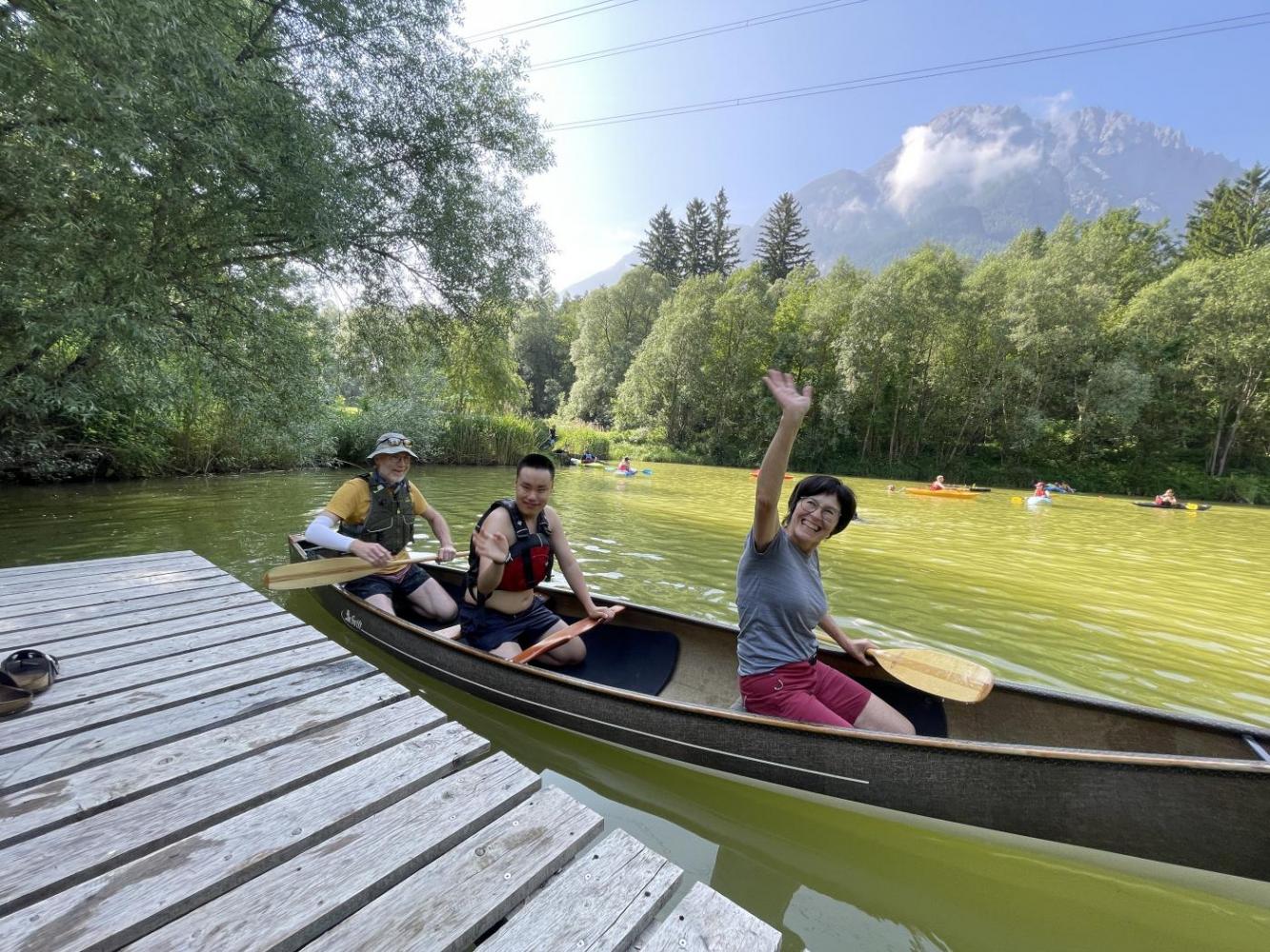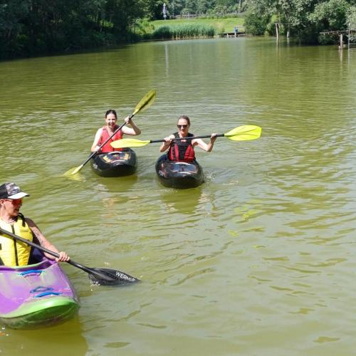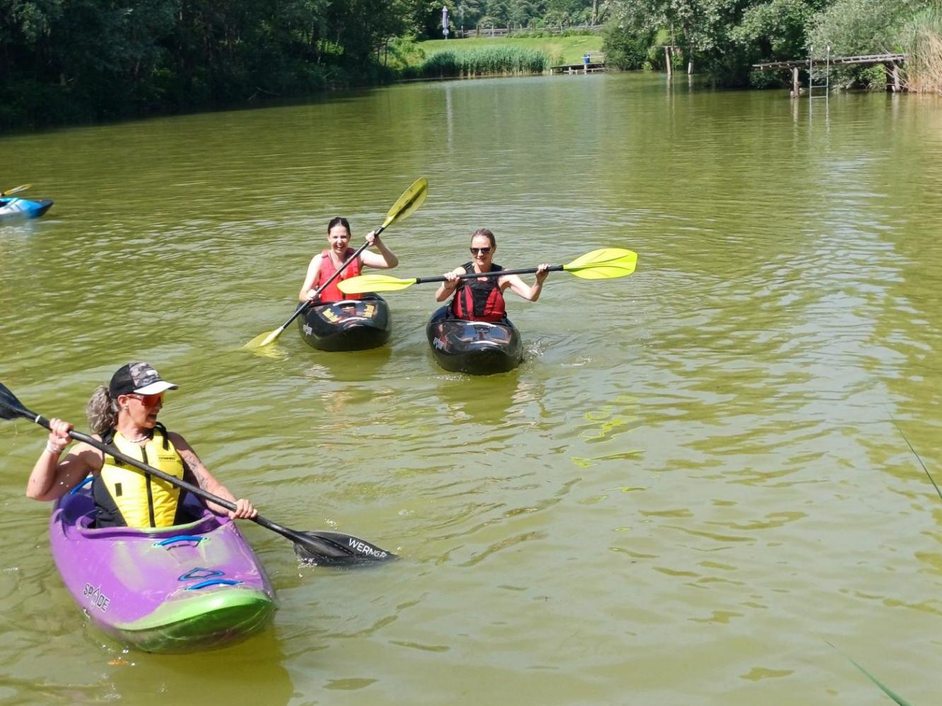 Aber auch jene, die lieber trockene Füße behielten und sich heuer noch nicht ins Kajak trauten, kamen voll auf ihre Kosten. Dank unserer lieben Elfriede und ihrem Hansjörg konnten sie gemütlich eine Runde mit dem Kanu über den See drehen.