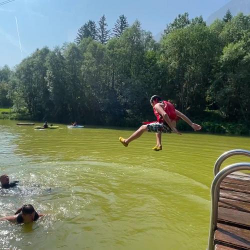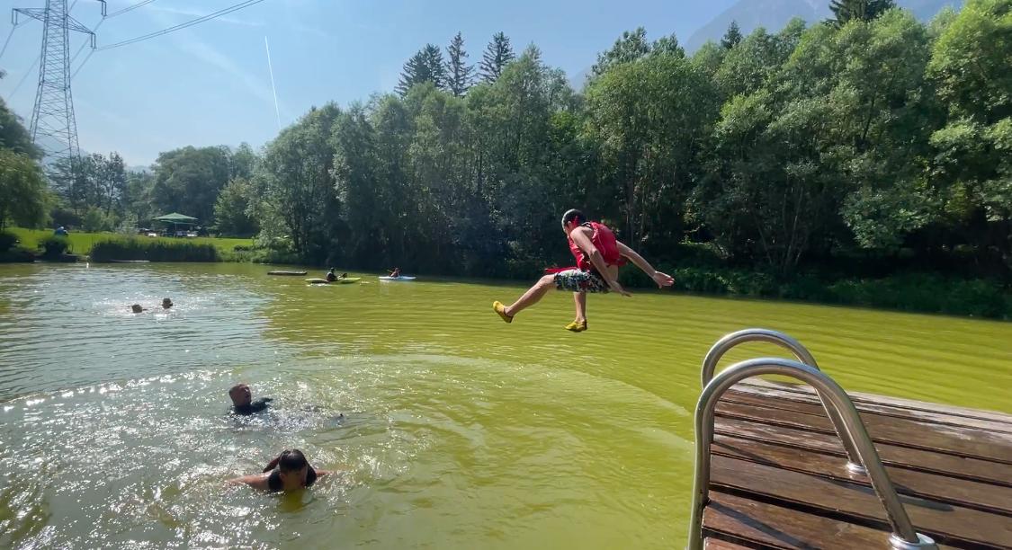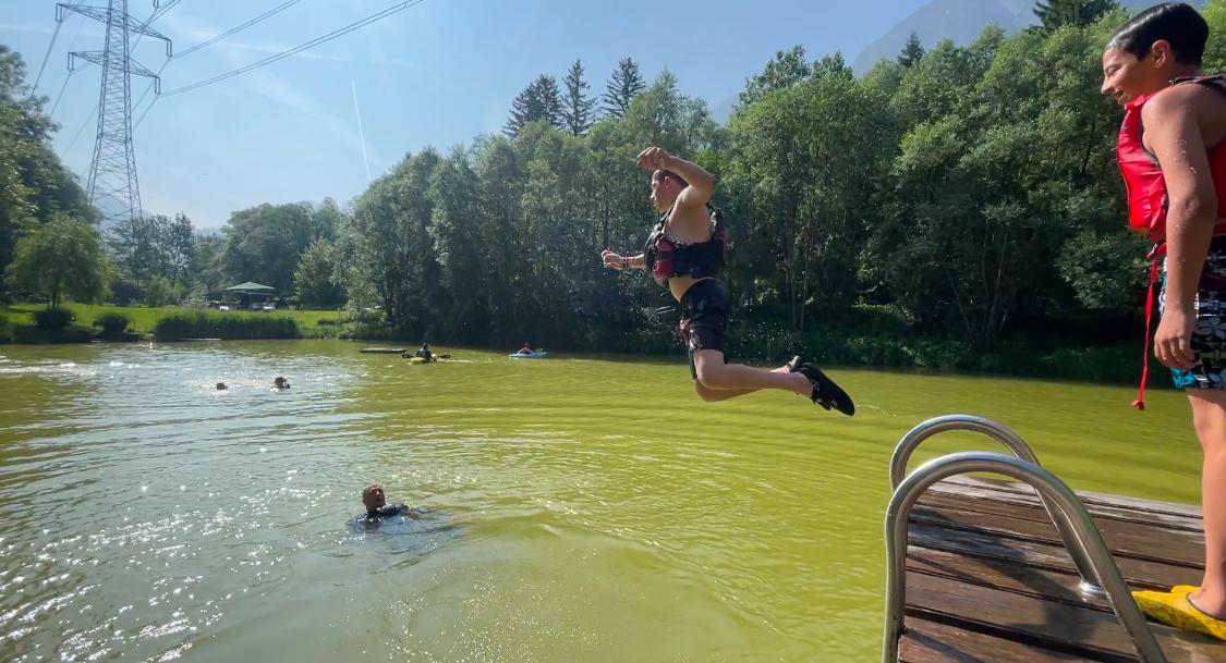 Die Kinder nutzten die heißen Temperaturen außerdem, um coole Sprünge ins Wasser zu wagen.