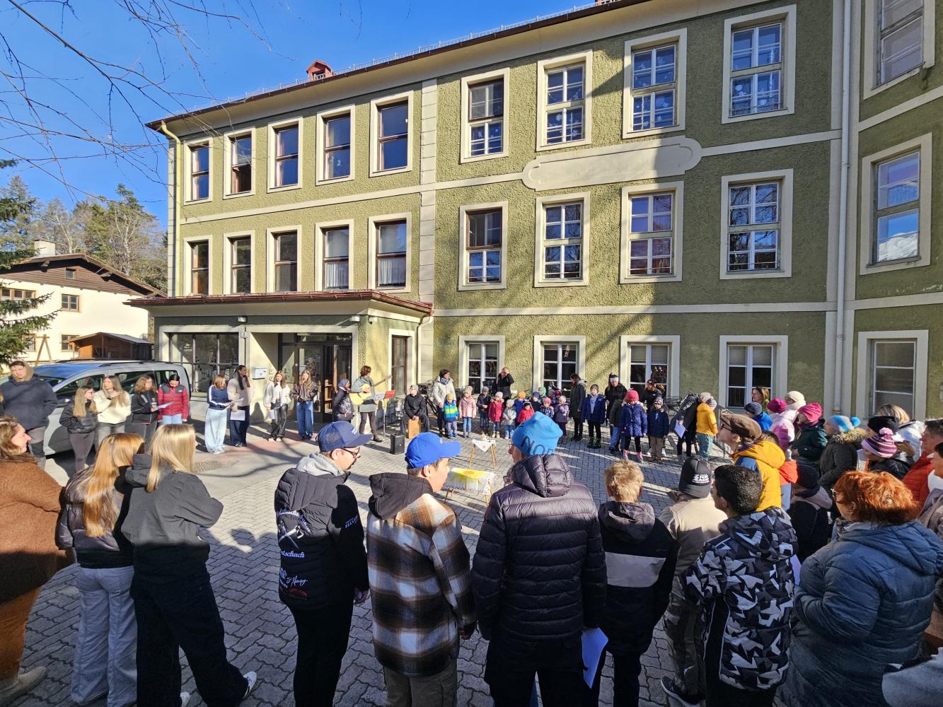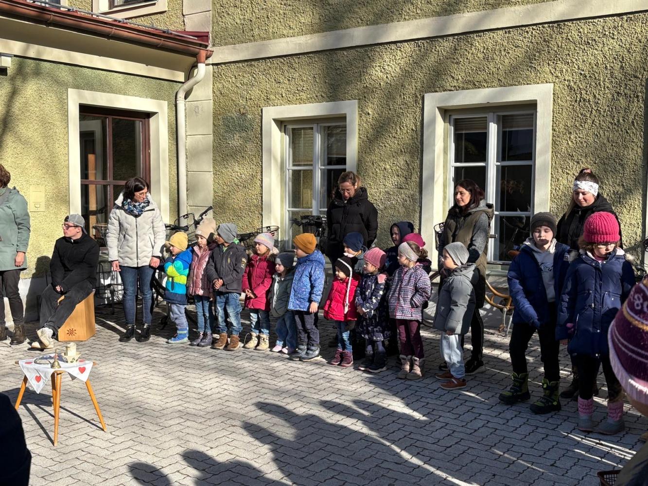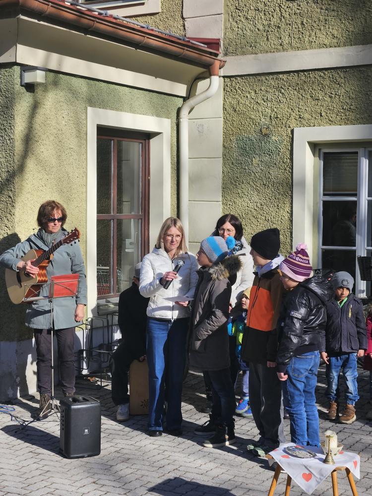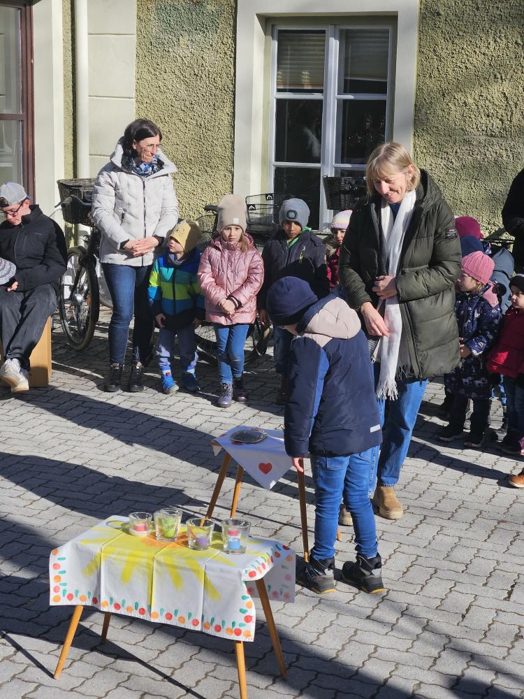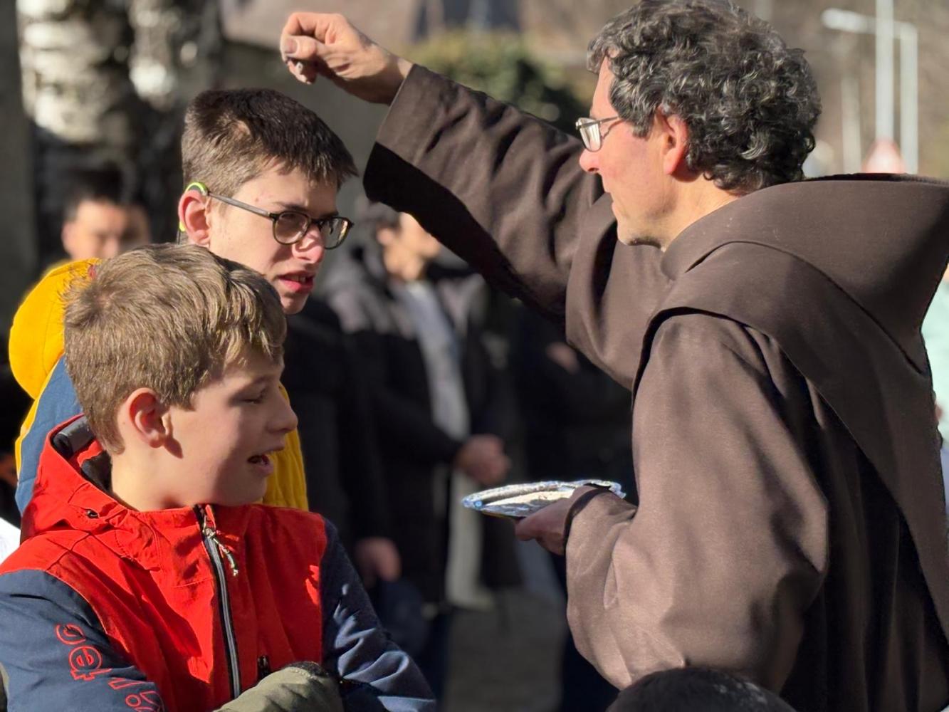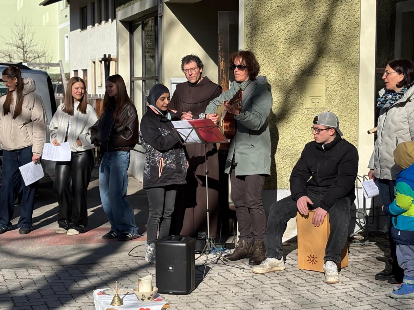 Den Beginn der Fastenzeit feiern wir traditionell mit einer Aschenauflegungs-Feier. Gemeinsam mit dem Kindergarten und Schüler:innen der FS der Dominikanerinnen trafen wir uns im Schulhof, wo Pater Martin die Asche aus den Palmkätzchen des Vorjahres segnete und uns damit ein Kreuzzeichen auf den Kopf streute.