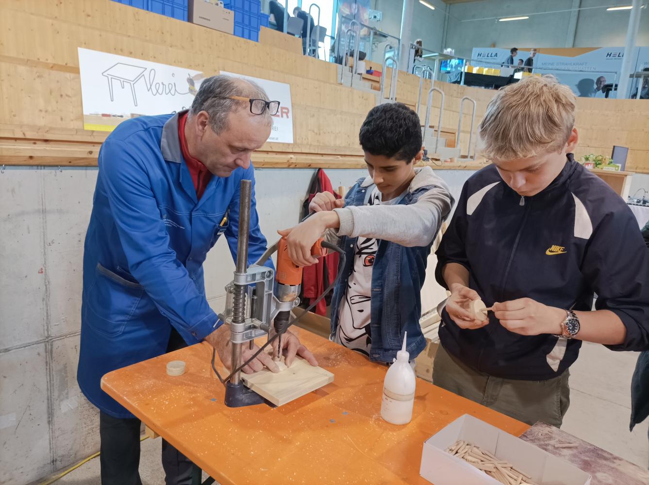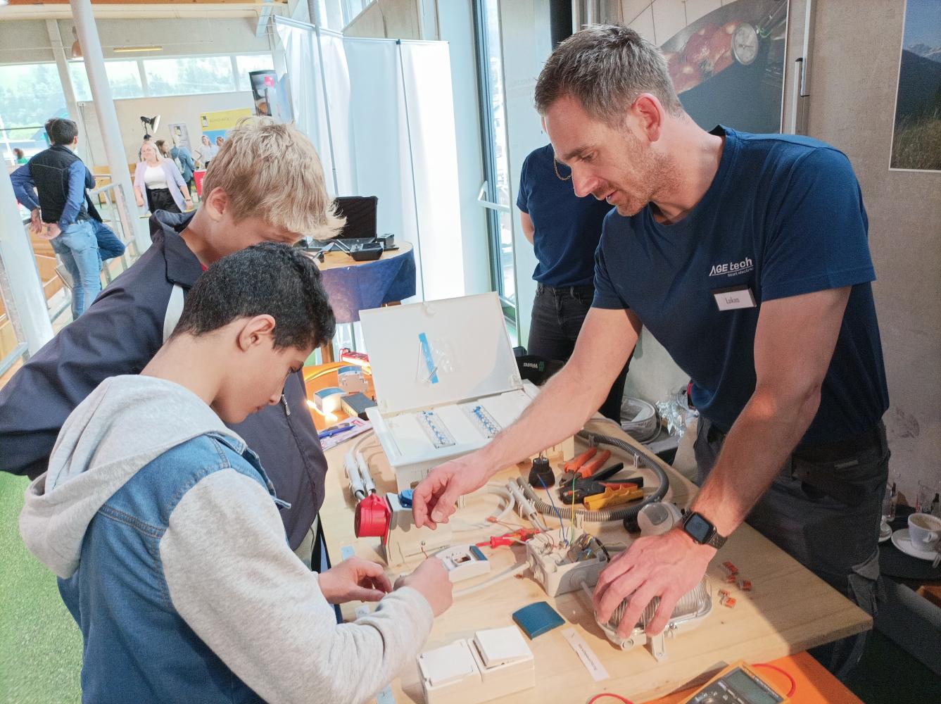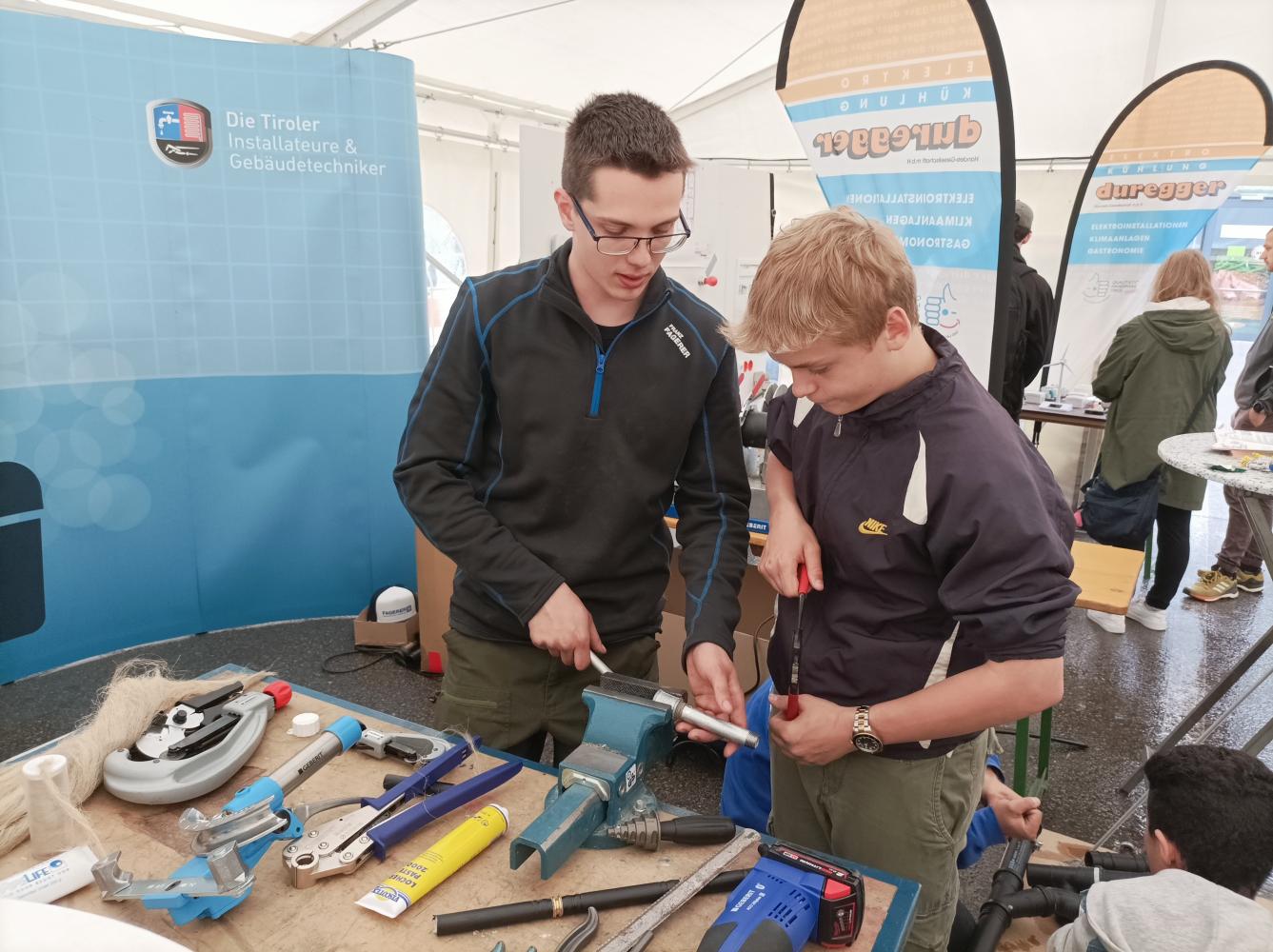 Die Schüler:innen durften sich als Maler- und Anstreicher, Maurer, Mechaniker, Holzverarbeiter, Bäcker, Verwaltungsassistent (Land Tirol), Waffelhersteller, Lebensmitteltechniker, Elektriker, Installateur oder Industriearbeiter versuchen, entweder an konkreten Arbeiten oder mittels 3-D-Brille.