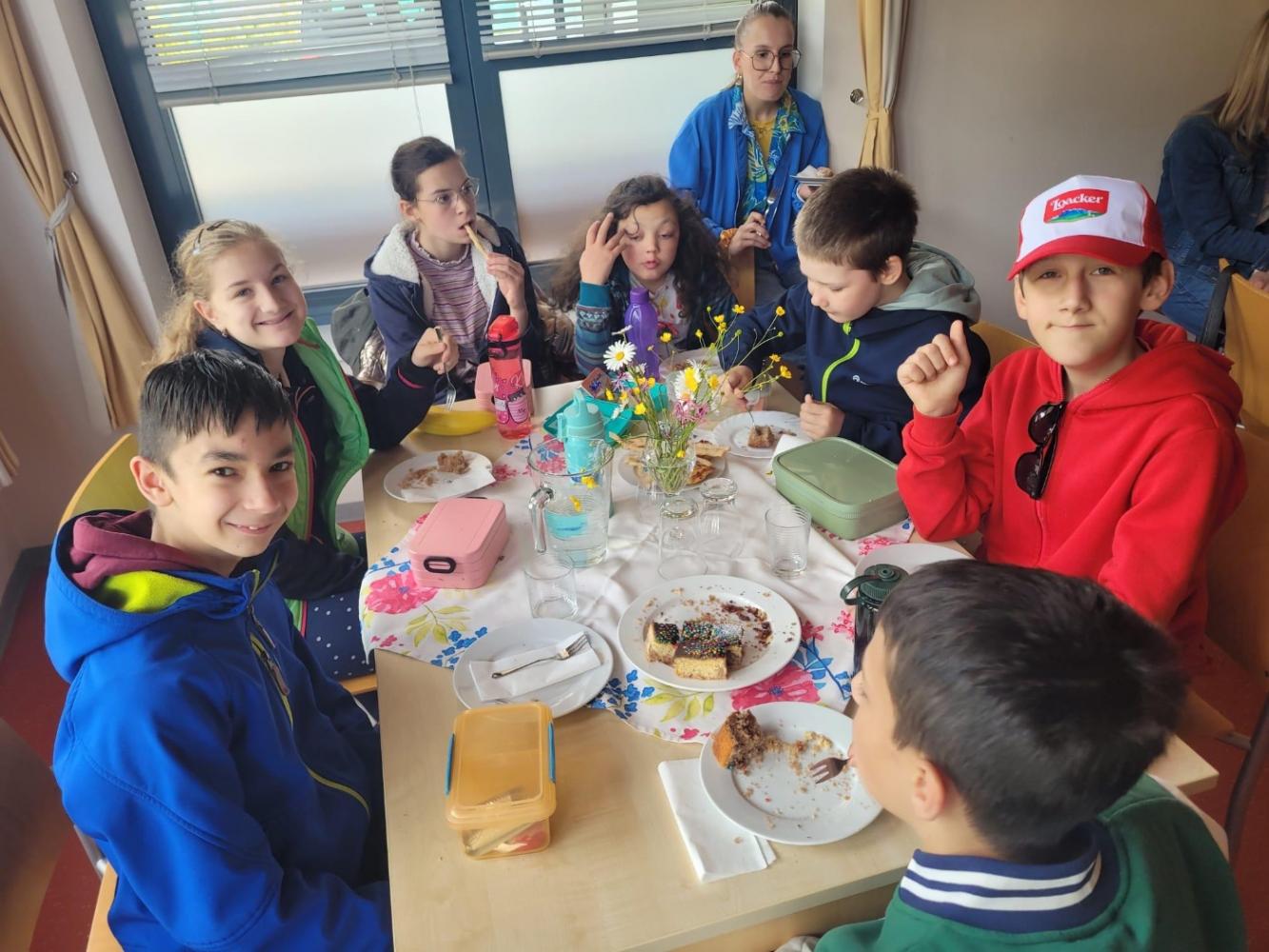 Danach stärkten wir uns bei einer gemeinsamen Jause. Die Schüler:innen der ASO Sillian hatten mit viel Liebe selbstgebackene Kuchen und köstliche Pizzaschnecken vorbereitet.