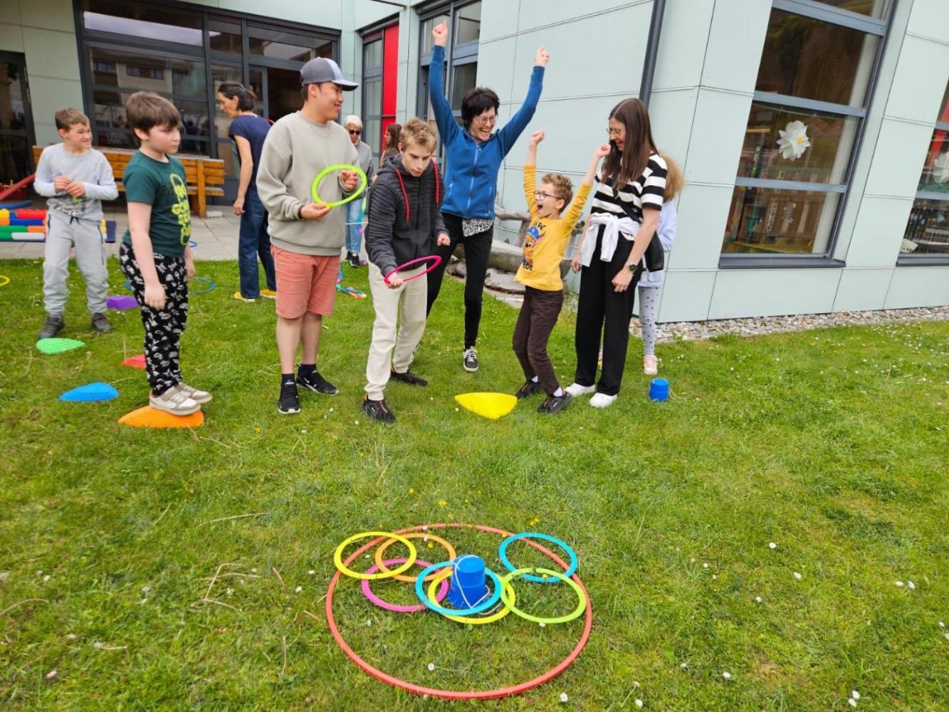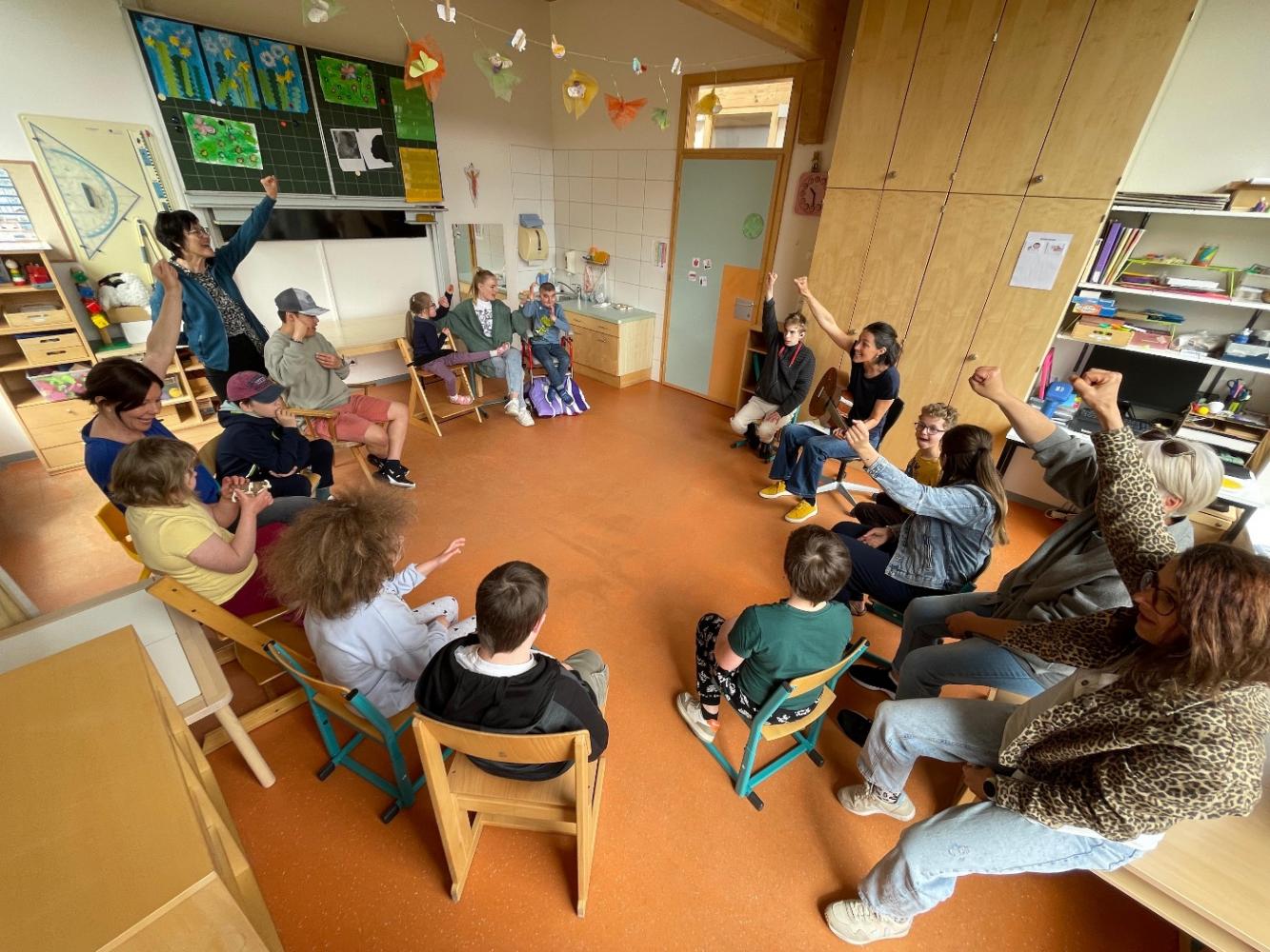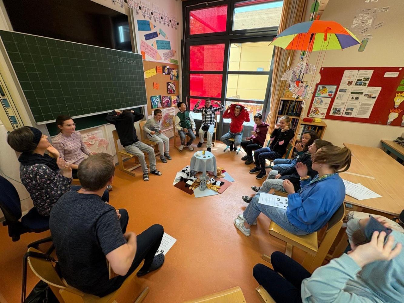 Anschließend wurden wir in zwei Gruppen aufgeteilt und durften in den Klassenräumen gemeinsam singen, spielen und lachen. Schnell entstanden neue Freundschaften und die Freude war auf beiden Seiten groß.