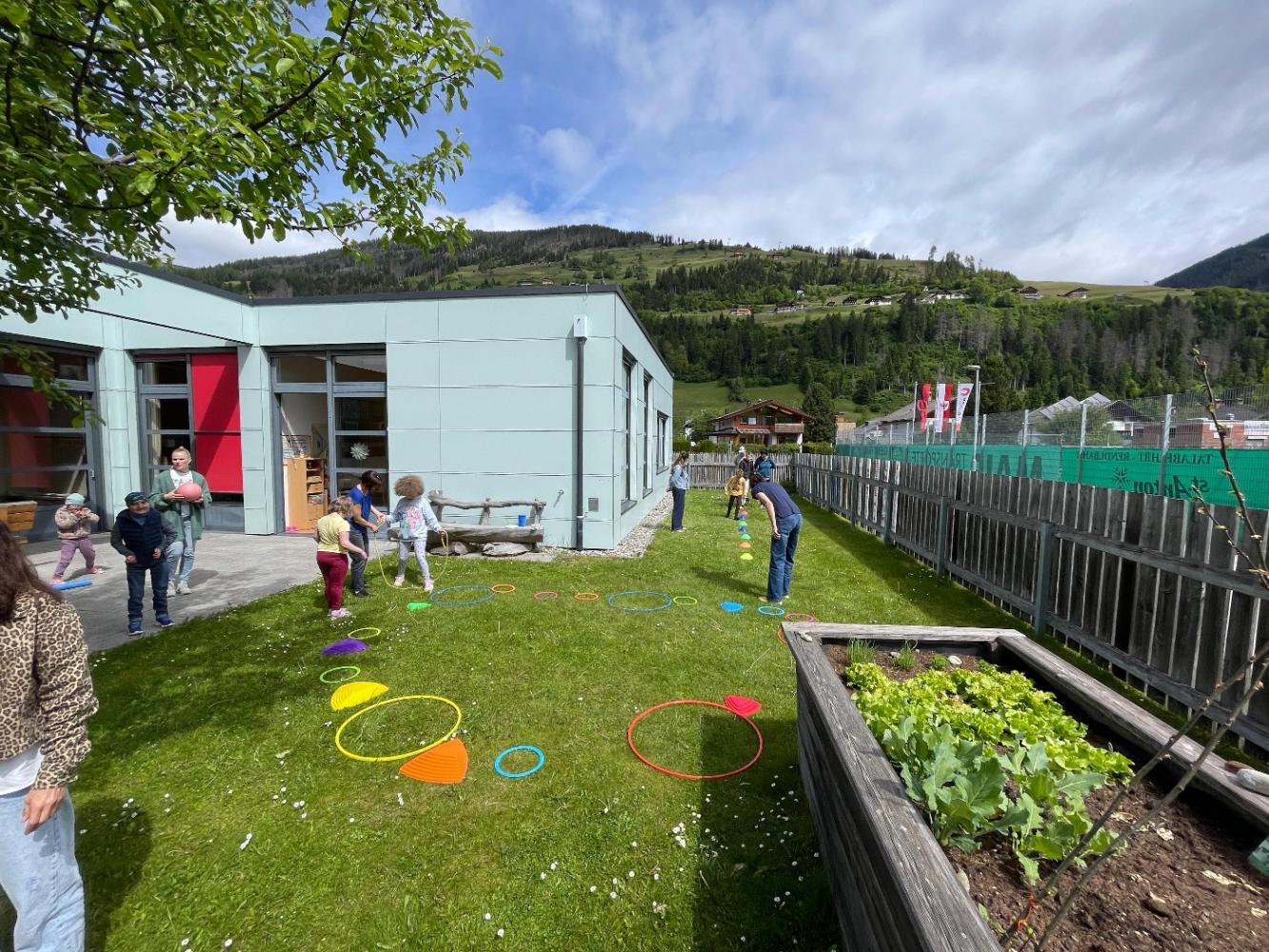 Zum Ausklang des Vormittags verbrachten wir noch Zeit im Schulgarten, wo gespielt und geplaudert wurde. Bevor wir uns wieder auf den Rückweg nach Lienz machten, überreichten wir den Kindern der ASO Sillian ein kleines Geschenk als Dankeschön.