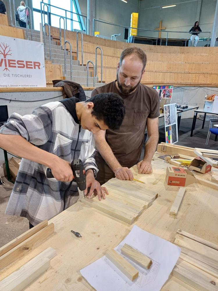 Auch heuer hat die Wirtschaftskammer wieder zum Berufsfestival eingeladen. Unsere älteren Schüler:innen wissen schon, dass das ein richtig cooles Angebot ist! Und jene, die das erste Mal mitgehen durften, waren ebenfalls begeistert! Je nach Interessens-Schwerpunkt durften sie sich als Bäcker:in, Elektriker:in, Haarstylist:in, Köch:in, Tischler:in, Dachdecker:in oder Metalltechniker:in versuchen. Dabei kamen überraschende Talente zum Vorschein! Es gab auch Informationen über eine Lehre im Einzelhandel oder im Dienstleistungsbereich. Auf jeden Fall bringt es Schüler:innen und Begleitpersonen auf gute Ideen, wohin der berufliche Weg nach der Schule gehen könnte! Herzlichen Dank an alle, die den Schüler:innen diese positiven Erfahrungen ermöglicht haben!