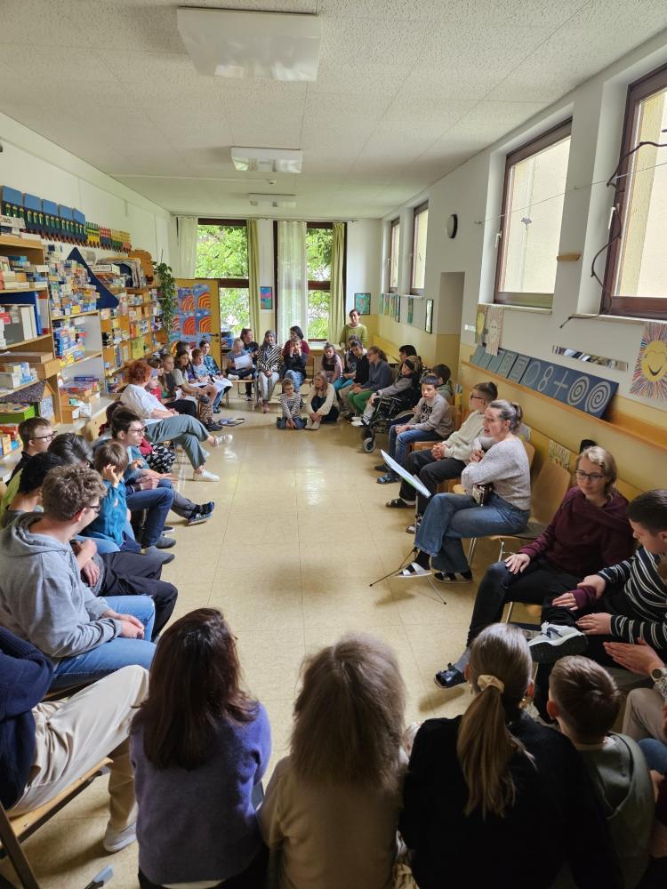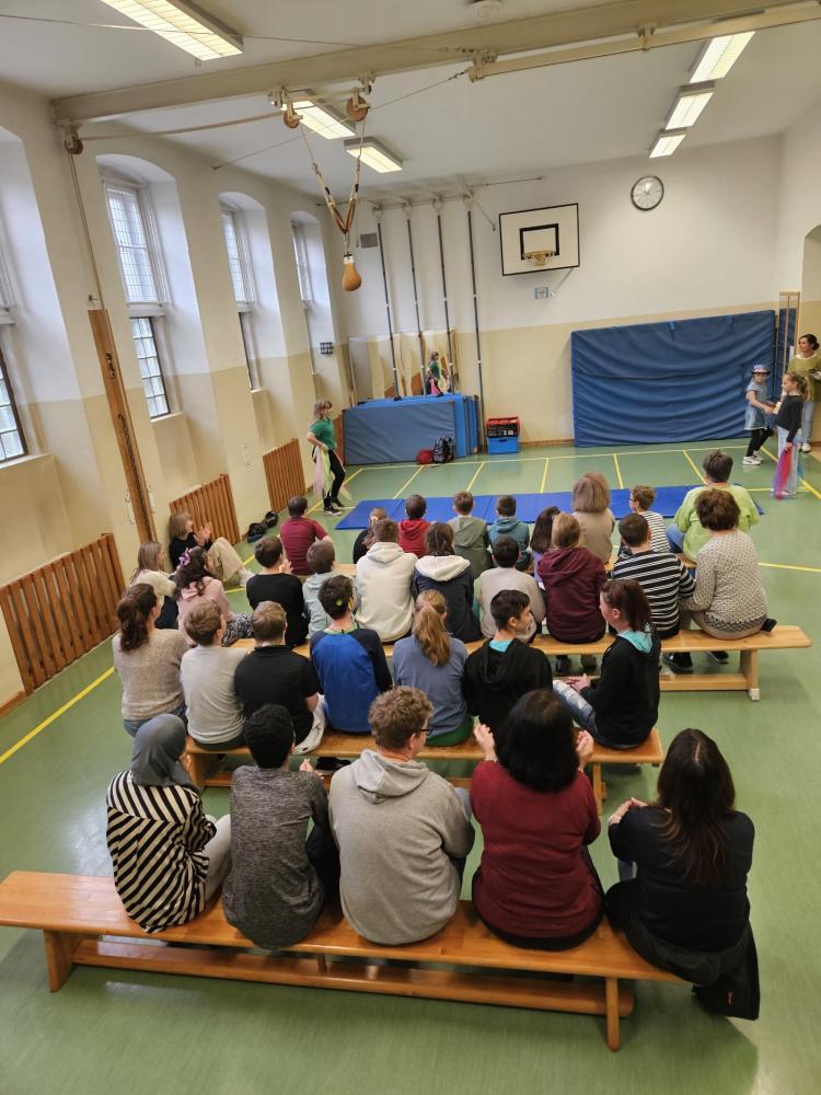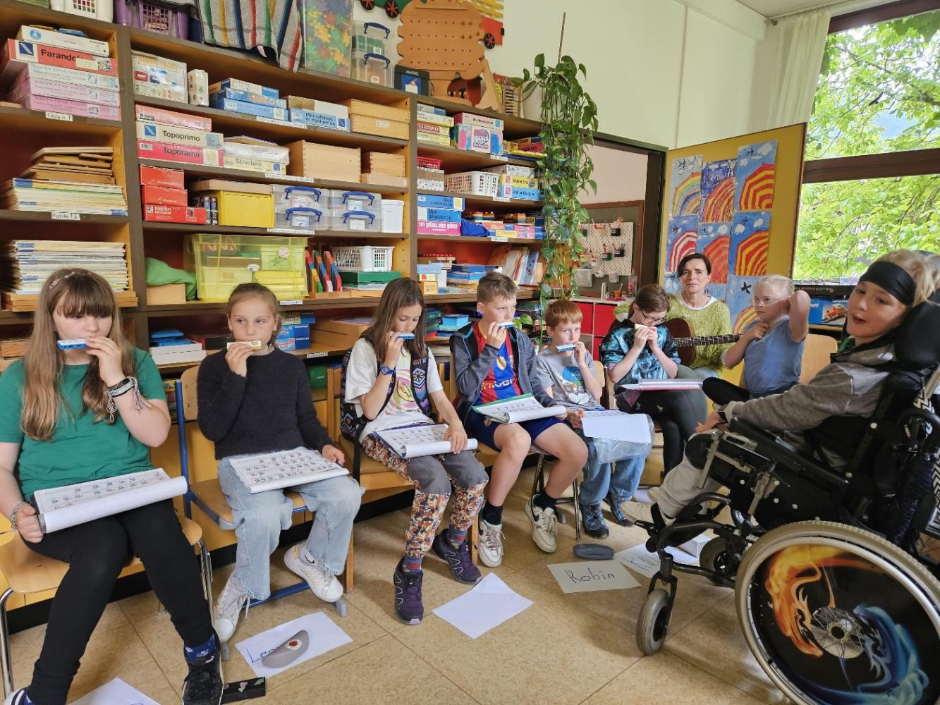 Weil ihr Mitschüler Matthias im kommenden Schuljahr an unsere Schule wechseln wird, wollten die anderen Kinder wissen, wie es denn dort so ist, wo Matthias hinkommt. Deshalb haben sie sich mit ihrer Lehrerin Doris Ragger für einen Besuch angemeldet. Es war eine richtig nette Begegnung!!! Nach einer kurzen Schulführung gab es eine gemeinsame Jause, und danach zeigten uns die Gastkinder eine wirklich tolle Zirkusaufführung! Wir waren begeistert!!! Anschließend veranstalteten wir gemeinsam den Freitags-Singkreis, der allen Spaß gemacht hat. Wir staunten, wie gut die Kinder aus Nikolsdorf Mundharmonika spielen können! Leider war die Zeit für den Besuch viel zu kurz! Herzlichen Dank an euch alle! Wir haben uns sehr gefreut!