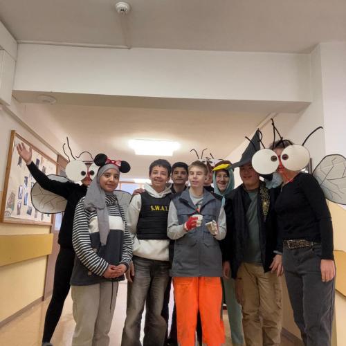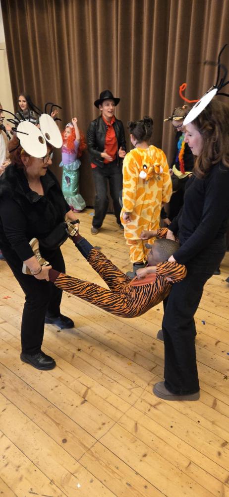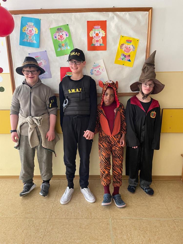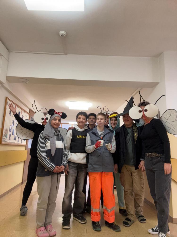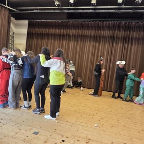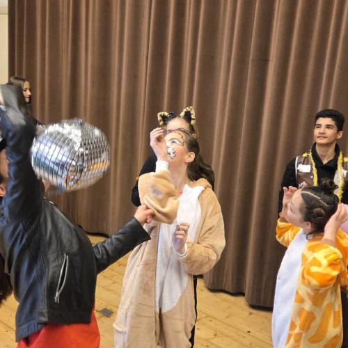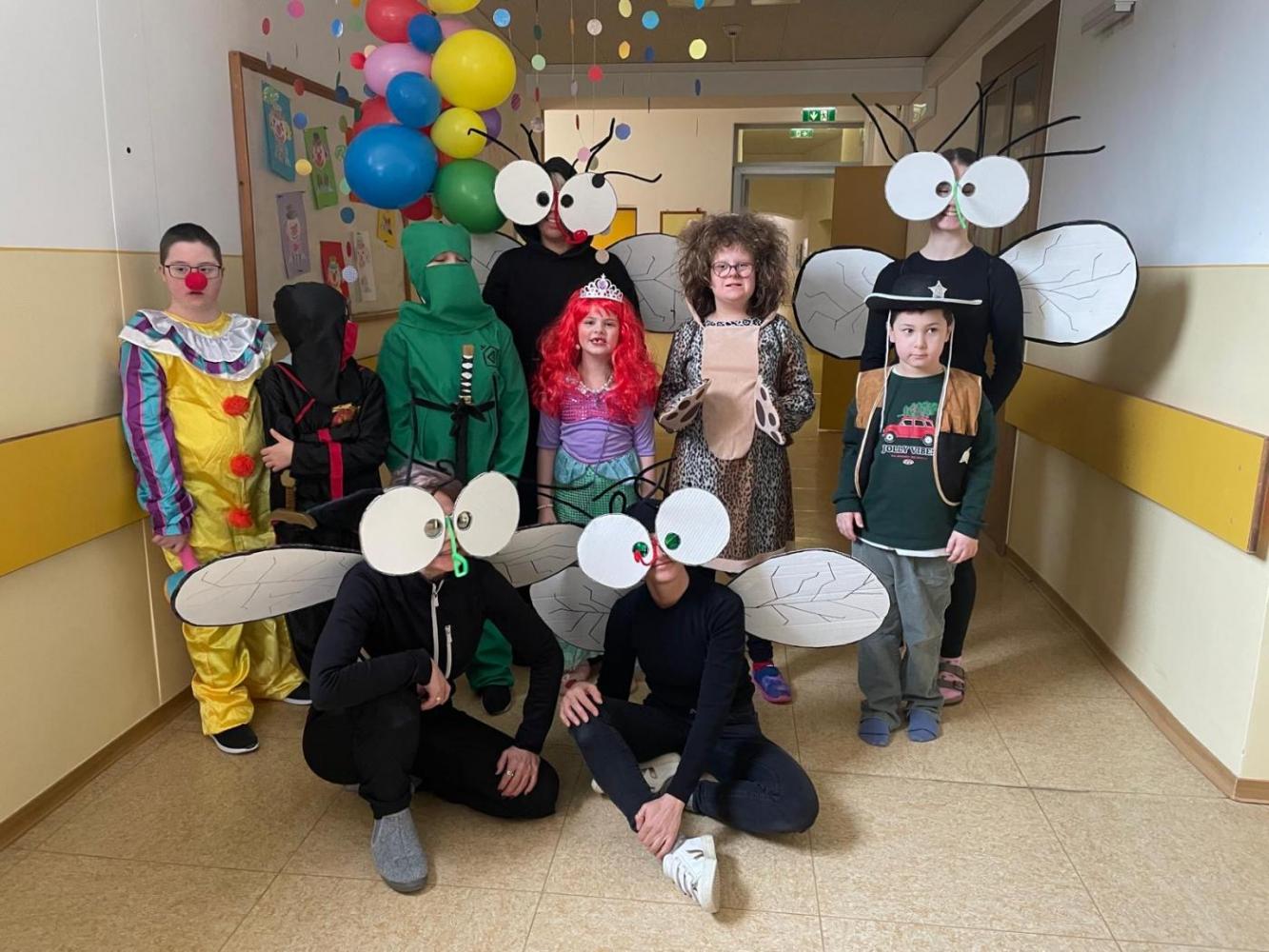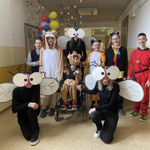 Am Faschingsdienstag hatten wir besonderen Besuch in der Schule: Löwen, Affen, Katzen, Giraffen, Fliegen, Polizisten, Ninjas, Fußballer, Cowboys und sogar Harry Potter sorgten für ein buntes Treiben in den Gängen.