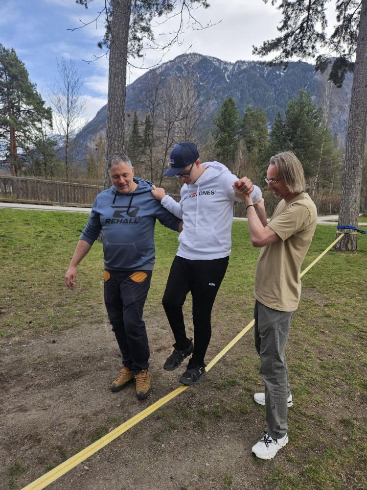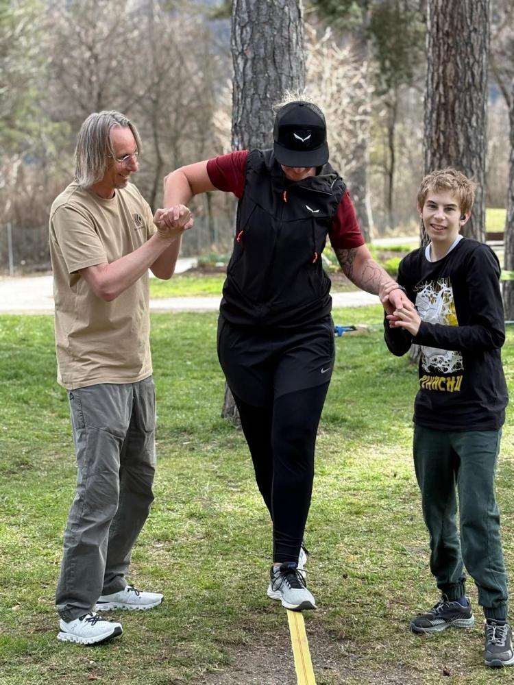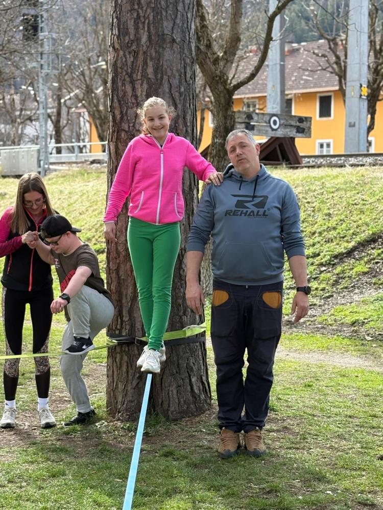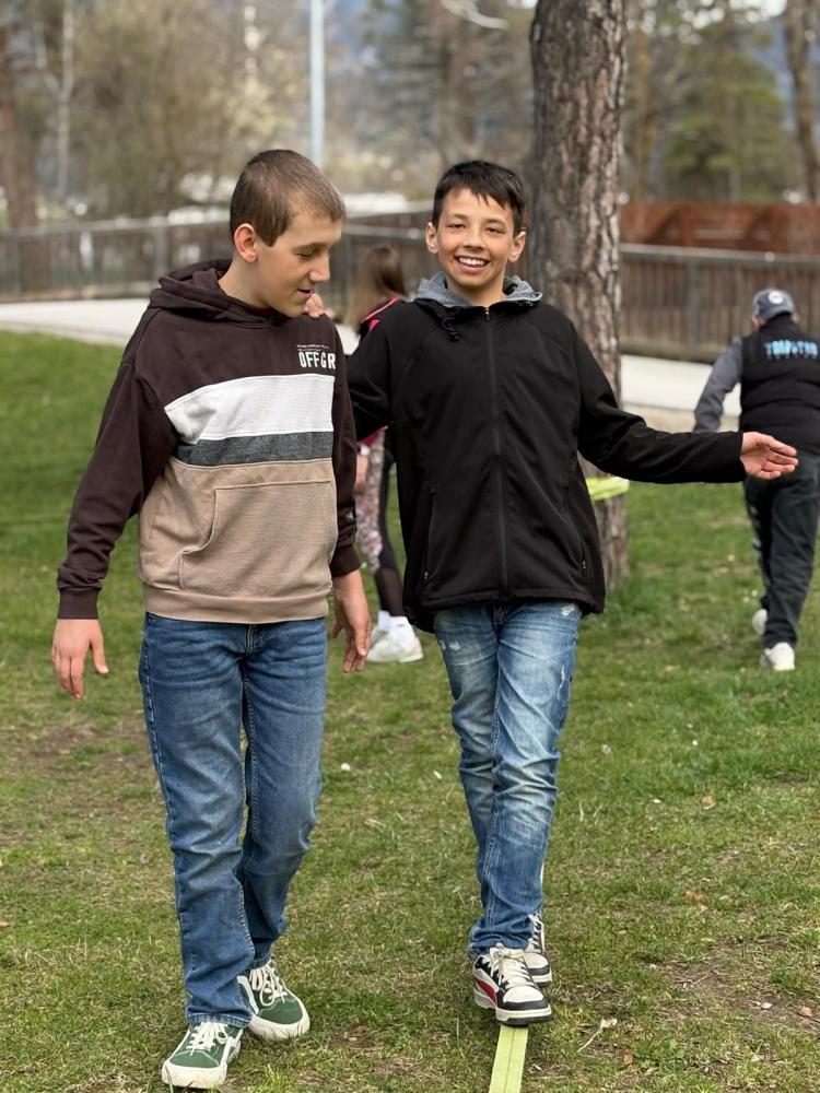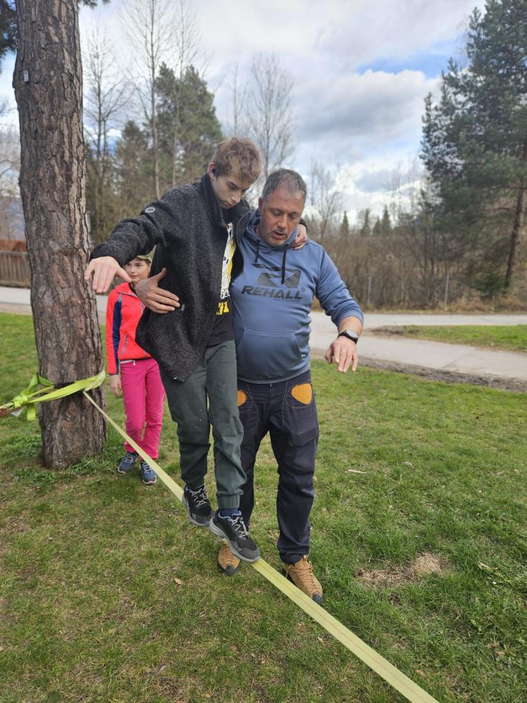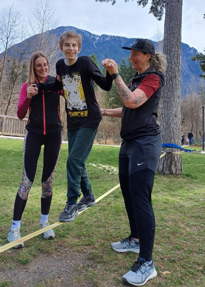 Die 3. und 4. Klasse haben mit Trainer Manuel Mascher einen Slackline-Nachmittag im Draupark vereinbart. Nachdem die meisten Schüler:innen damit schon positive Erfahrungen gemacht hatten, war die Vorfreude groß! Sie wissen nämlich ganz genau: Auf der Slackline wird die Rangordnung von Könnern und Nichtkönnern im Vergleich zum Schulbetrieb komplett umgedreht. Plötzlich sind die Erwachsenen diejenigen, die auf die Hilfe, Unterstützung und Tipps der Schüler:innen angewiesen sind!!! Dabei entwickelt sich ein wunderbares Lernfeld nicht nur für das Gleichgewicht, sondern auch für das soziale Lernen!