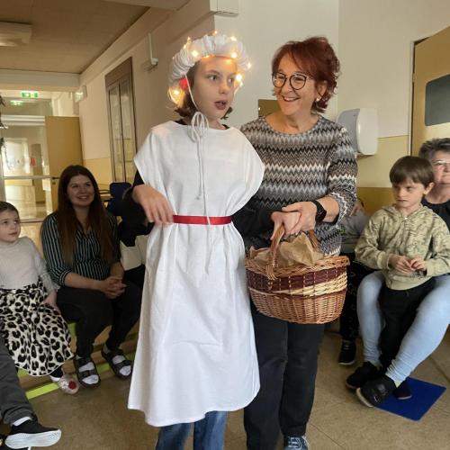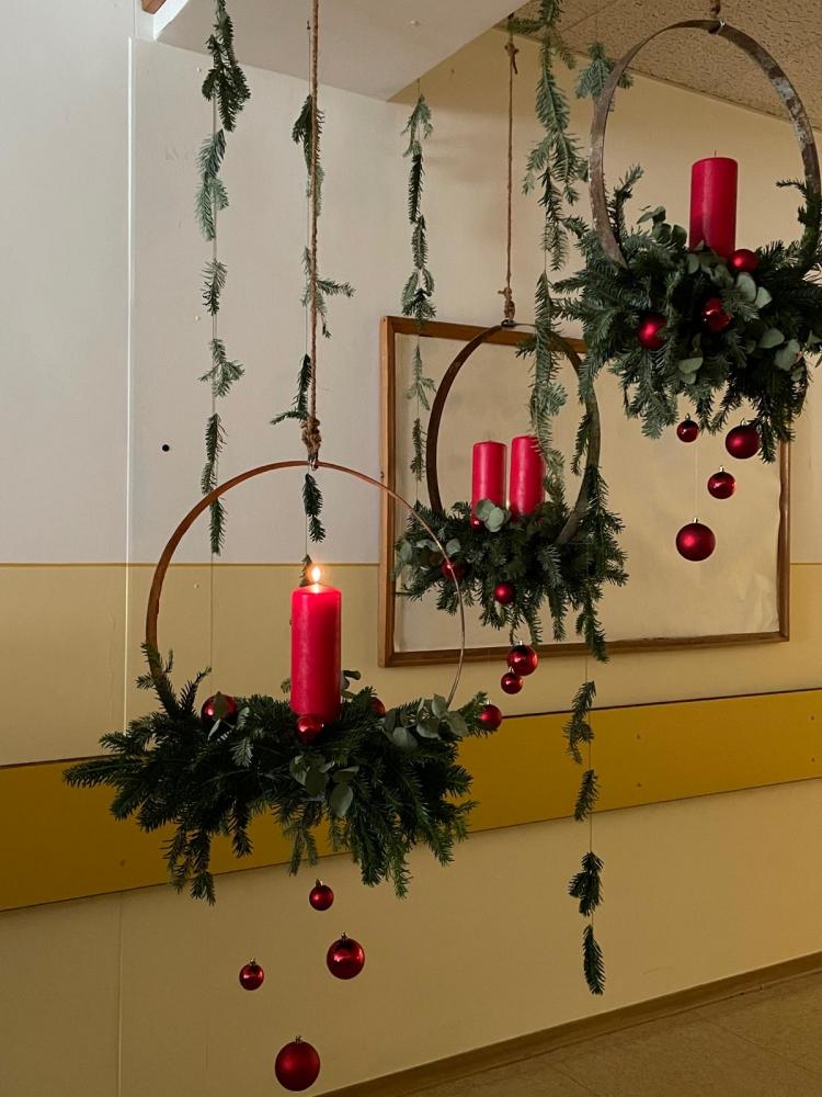 In der Adventzeit kehrte bei uns jeden Morgen ein ganz besonderer Zauber ein. Täglich fand unser gemeinsamer Adventmorgenkreis statt: Alle Klassen trafen sich im 1. Stock, entzündeten gemeinsam die Kerze am Adventkranz und sangen stimmungsvolle Adventlieder.