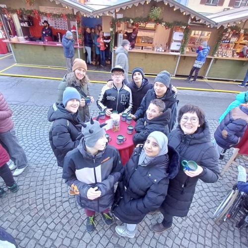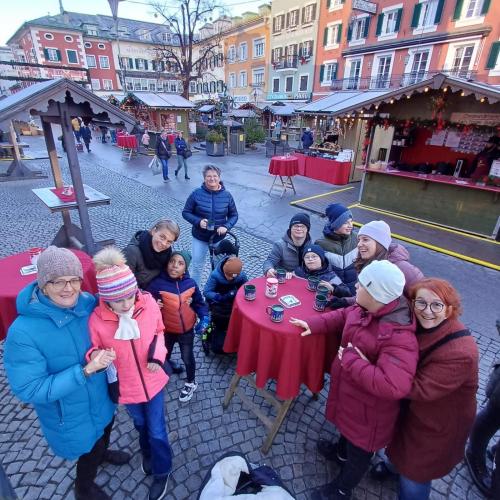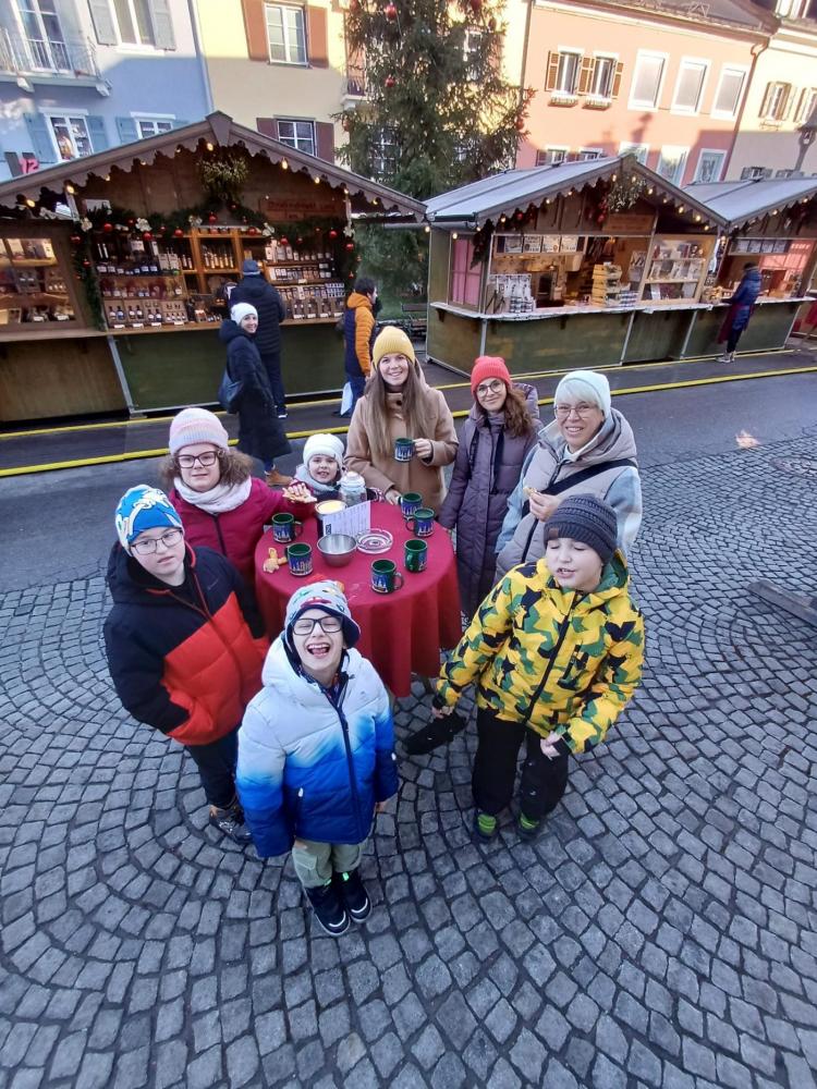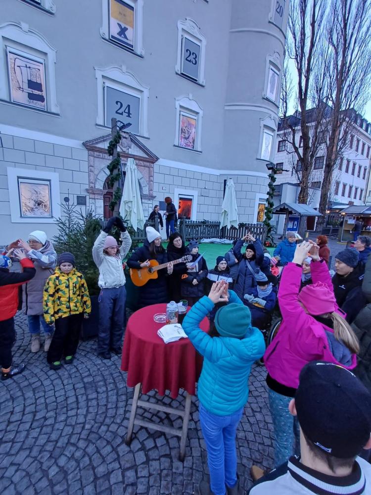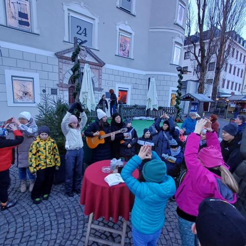 Ein weiteres Highlight war unser gemeinsamer Ausflug auf den Christkindlmarkt. Mit Gitarre im Gepäck tranken wir heißen Apfelpunsch und brachten spontan mit unseren adventlichen Liedern festliche Stimmung mitten auf den Hauptplatz.