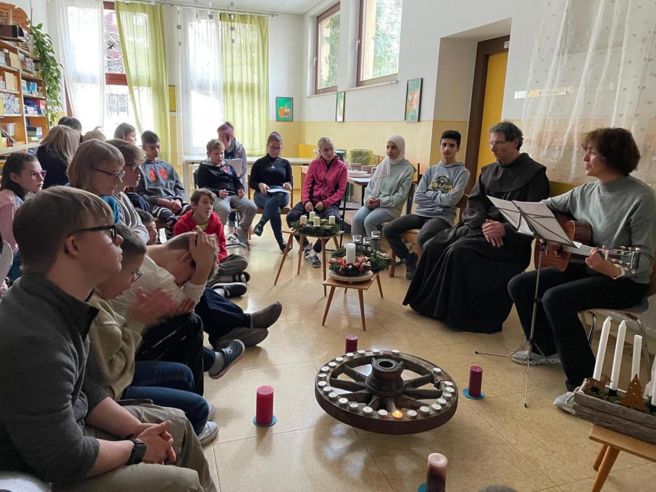 Ein besonderer Höhepunkt war der 1. Dezember. An diesem Tag besuchte uns Pater Martin und segnete unsere Adventkränze.