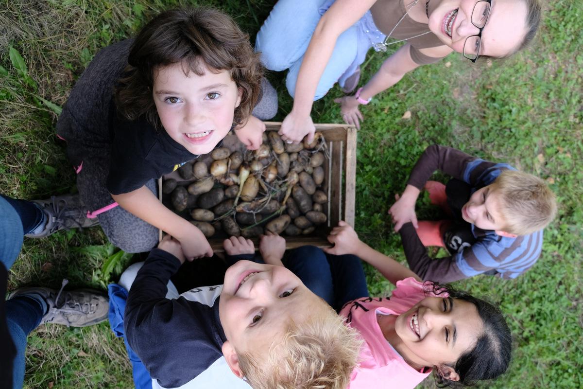 Kartoffelernte von Brigitte Schneider-Hofmann 22. Januar 2020 Nachdem wir im Frühling umgegraben, gesät und gejätet hatten, konnten wir im Herbst endlich Kartoffeln, Zwiebeln und Zucchini ernten.