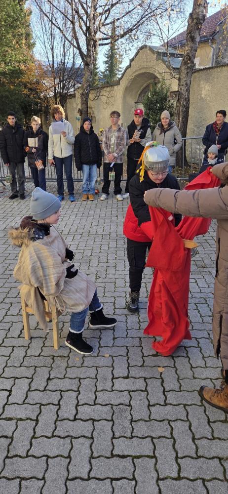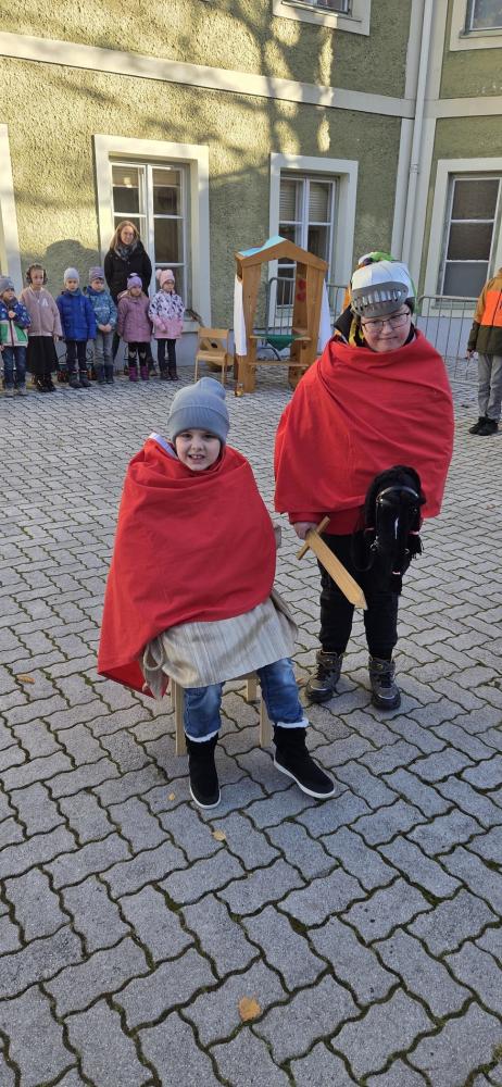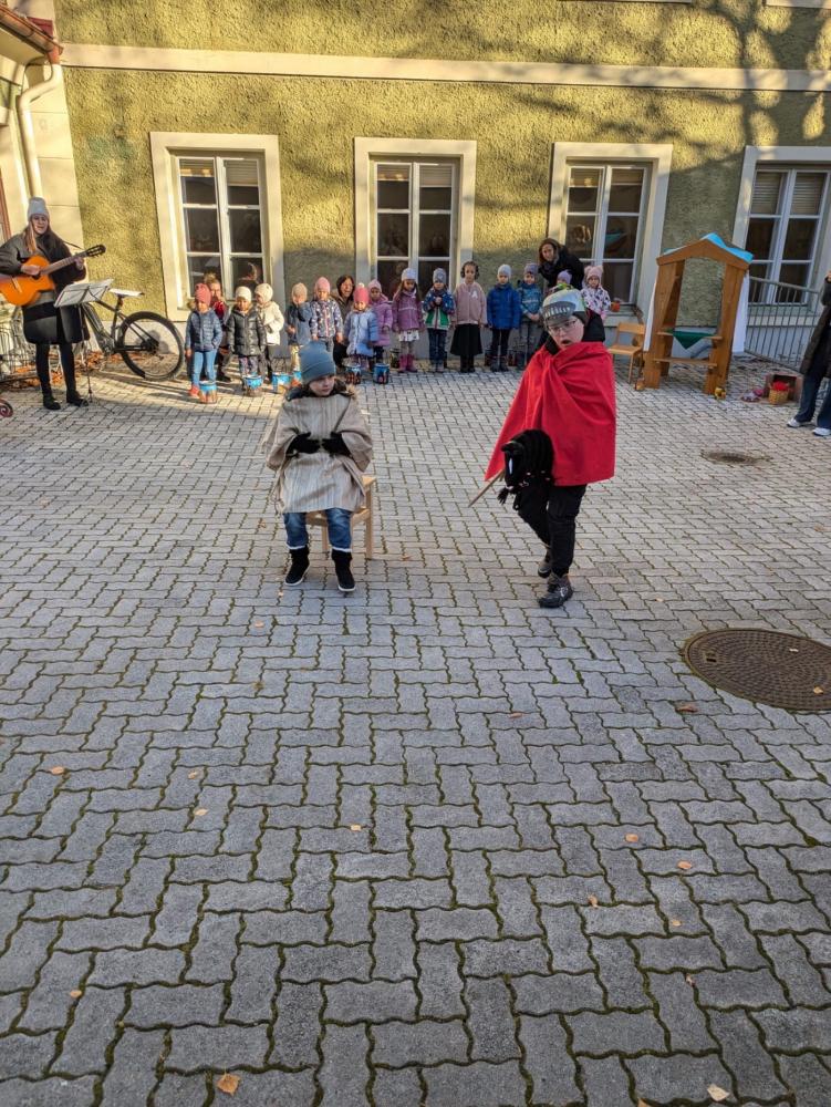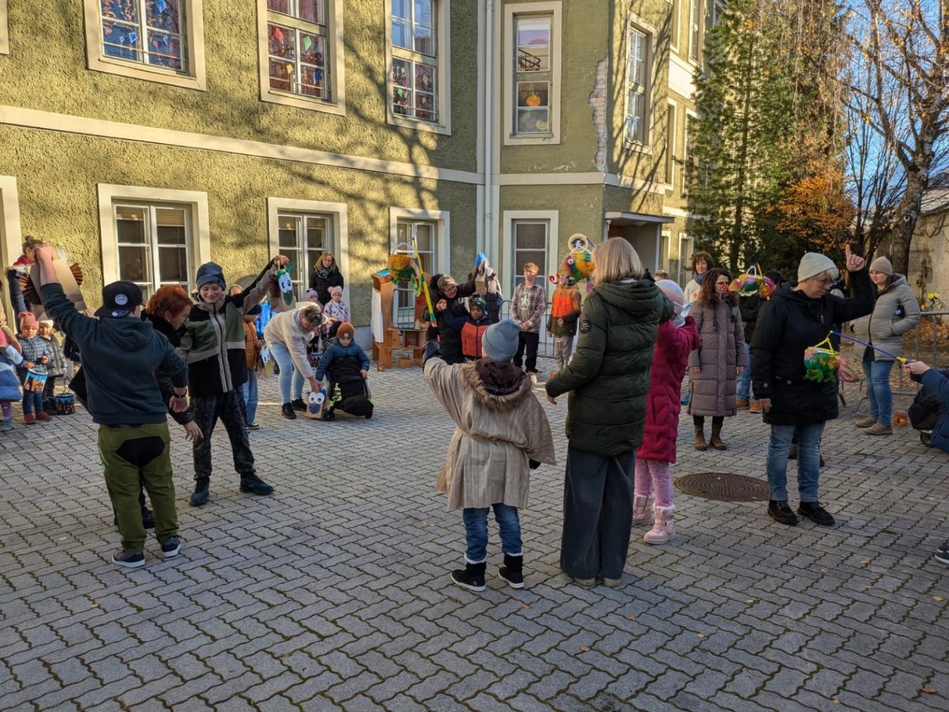 Am 11.11. feierten wir wieder unser traditionelles Martinsfest gemeinsam mit dem Kindergarten. Die Kinder gestalteten die Feier mit Texten, Liedern und einem Mini-Musical-Martinsstück. Anschließend folgte der Martinsumzug, angeführt von unserem Rittersmann Martin. Die Kinder und die Erzieherinnen hatten für uns alle einen wärmenden Tee zubereitet, und dank einer großzügigen Spenderin konnten wir dazu frische Brezen genießen.