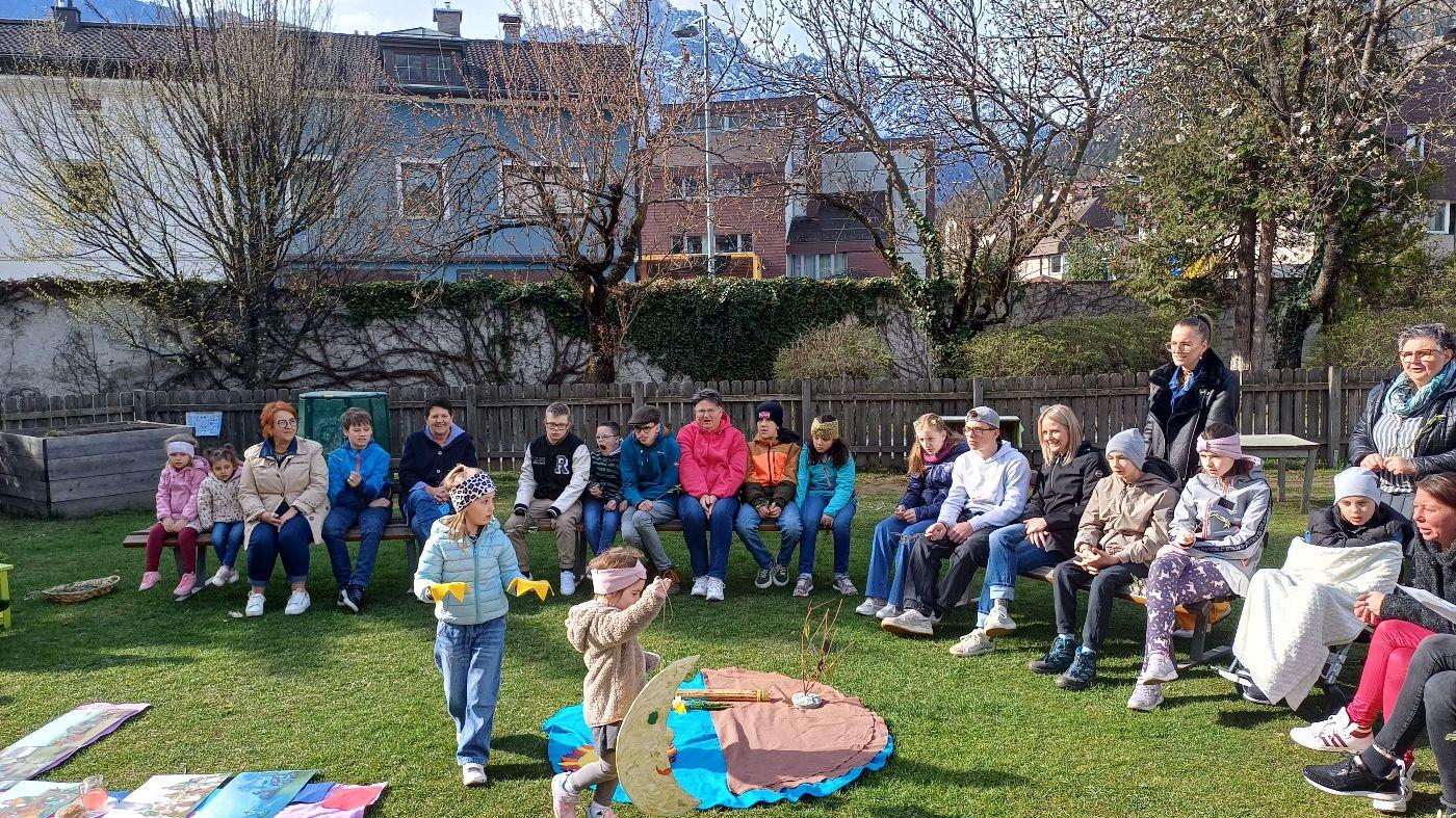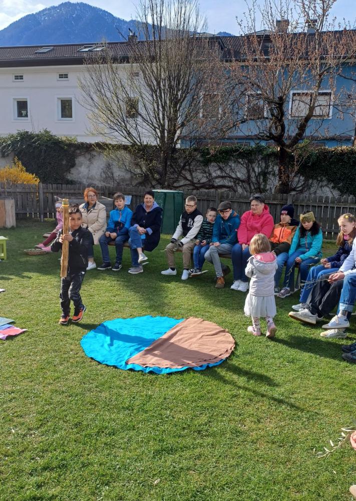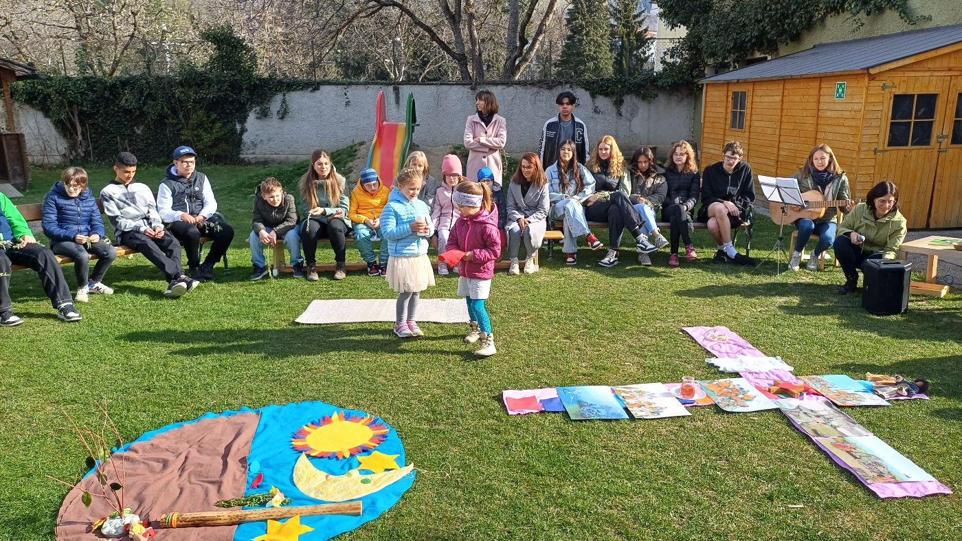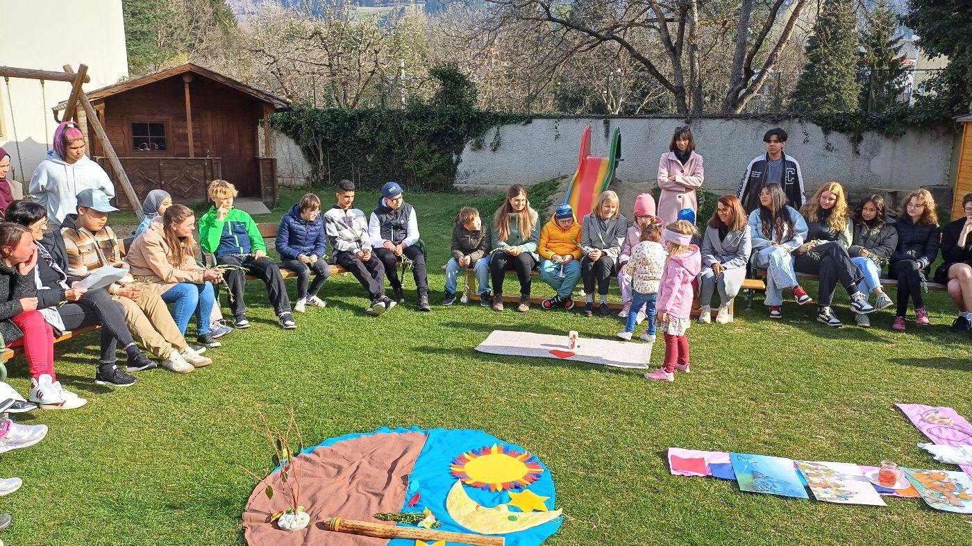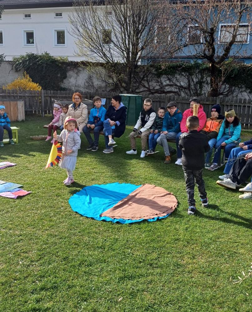Heuer haben uns die Kinder vom Montessori-Kindergarten zu einem wunderbaren und berührenden Osterfest eingeladen! Sie haben die Leidensgeschichte und Auferstehung Jesu erzählt und bildlich dargestellt. Wir haben gemeinsam gesungen und sie haben uns das Wunder der Schöpfung in einem schönen Bodenbild bewusst gemacht.