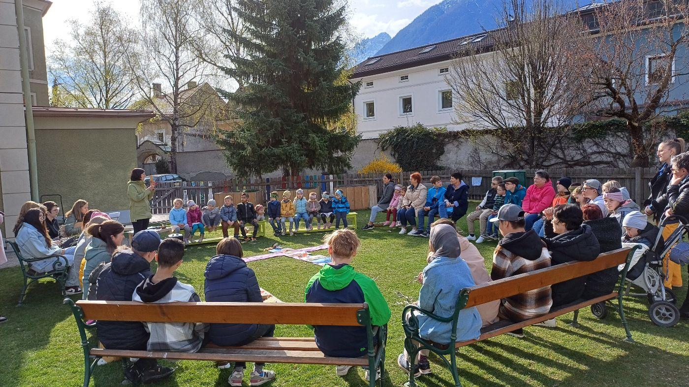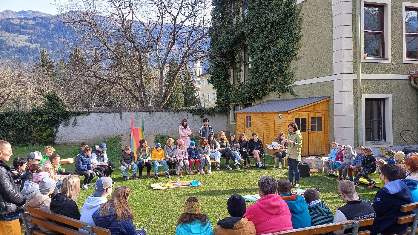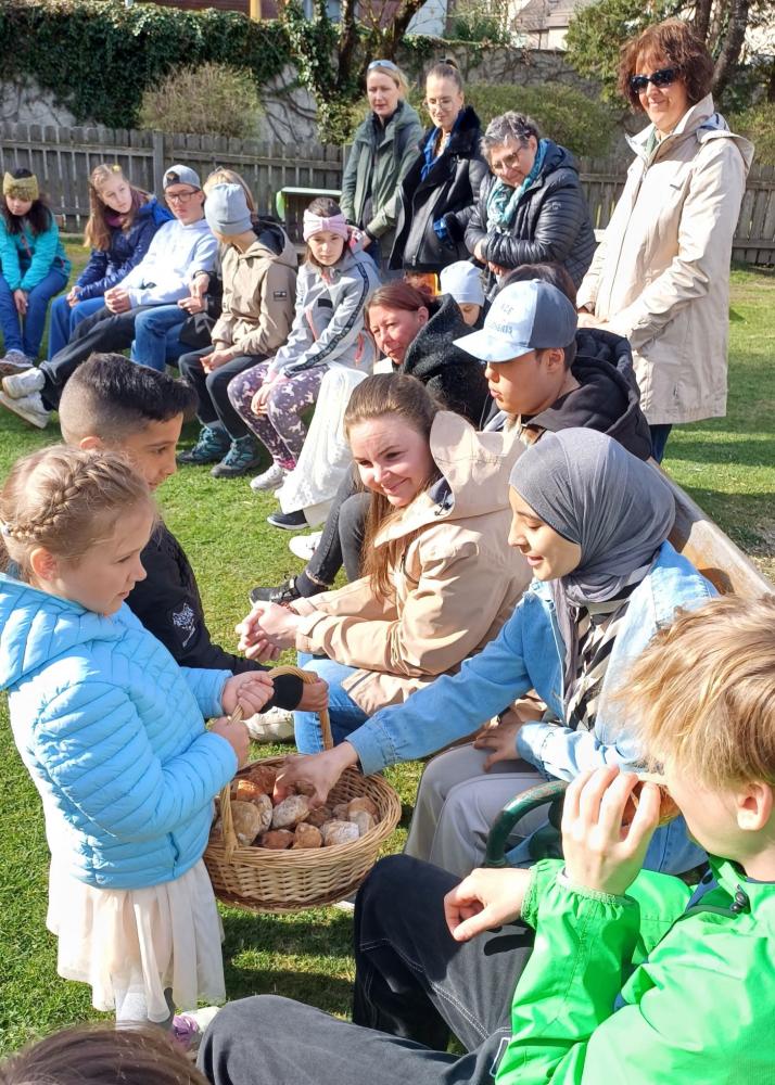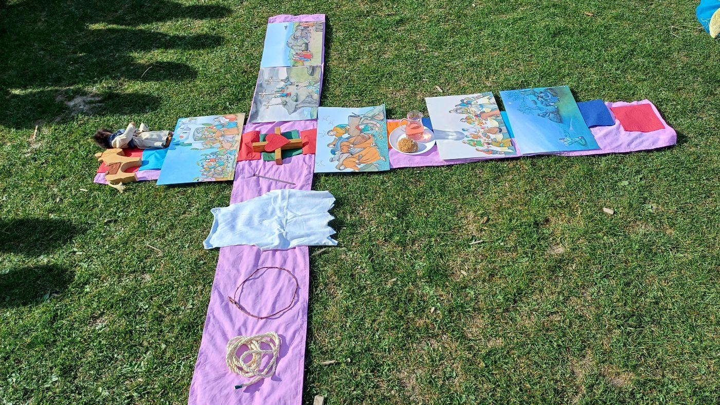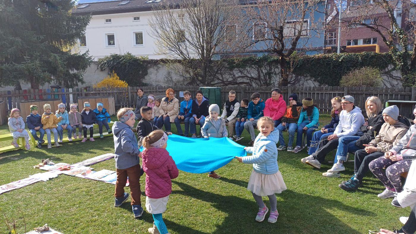 Heuer haben uns die Kinder vom Montessori-Kindergarten zu einem wunderbaren und berührenden Osterfest eingeladen! Sie haben die Leidensgeschichte und Auferstehung Jesu erzählt und bildlich dargestellt. Wir haben gemeinsam gesungen und sie haben uns das Wunder der Schöpfung in einem schönen Bodenbild bewusst gemacht.