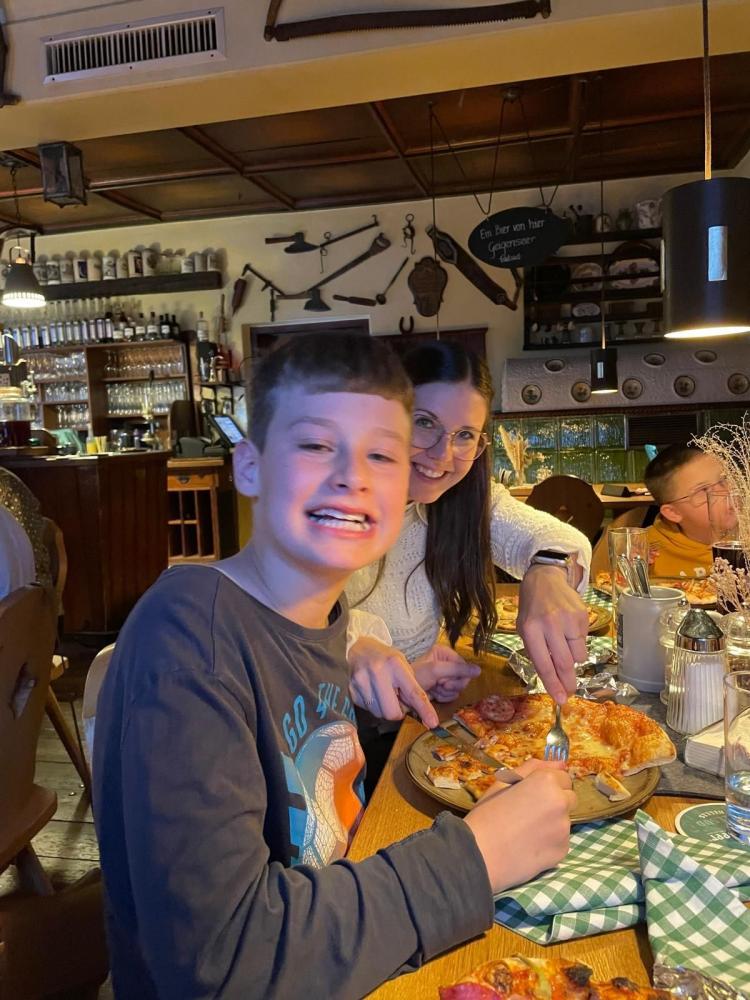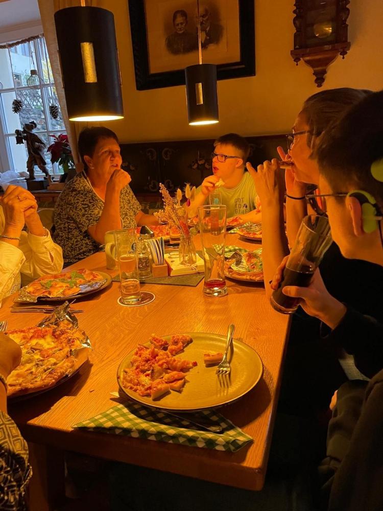 Doch damit war der Ausflug noch lange nicht zu Ende. Am Nachmittag ging es weiter nach Döllach im Mölltal, wo wir in einem besonders liebevollen kleinen Hotel übernachten durften – im „Hotelchen“ der Familie unseres Klassenkameraden Moritz. Dort wartete schon ein gemütlicher Abend auf uns: gemeinsam Pizza essen, lachen, spielen und einfach die Zeit miteinander genießen.