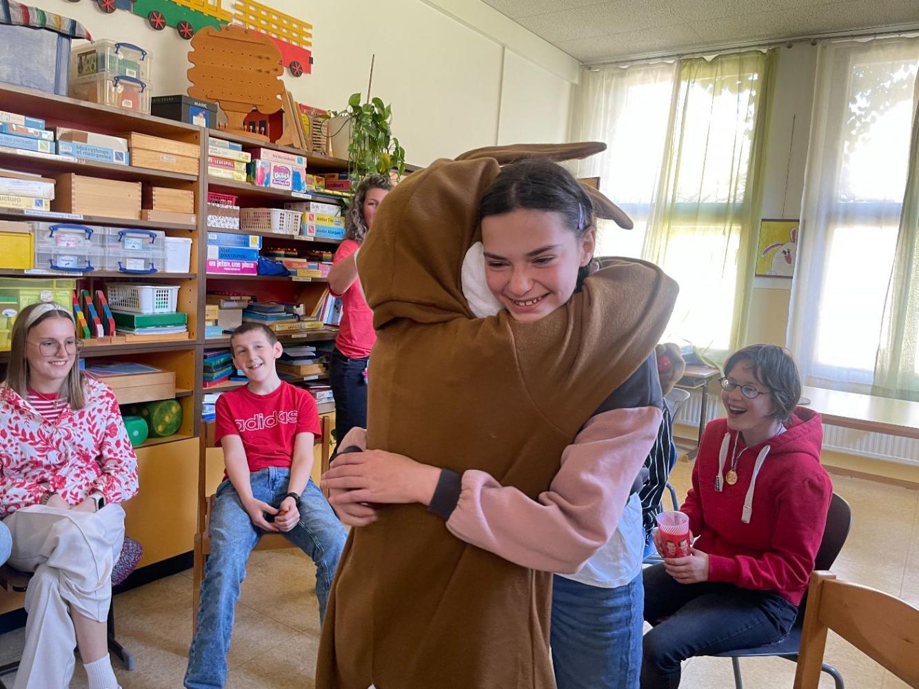 Was für eine Aufregung! Beim heutigen Singkreis bekamen wir ganz besonderen Besuch: Der Osterhase höchstpersönlich hoppelte vorbei und sorgte für große Augen und staunende Gesichter.