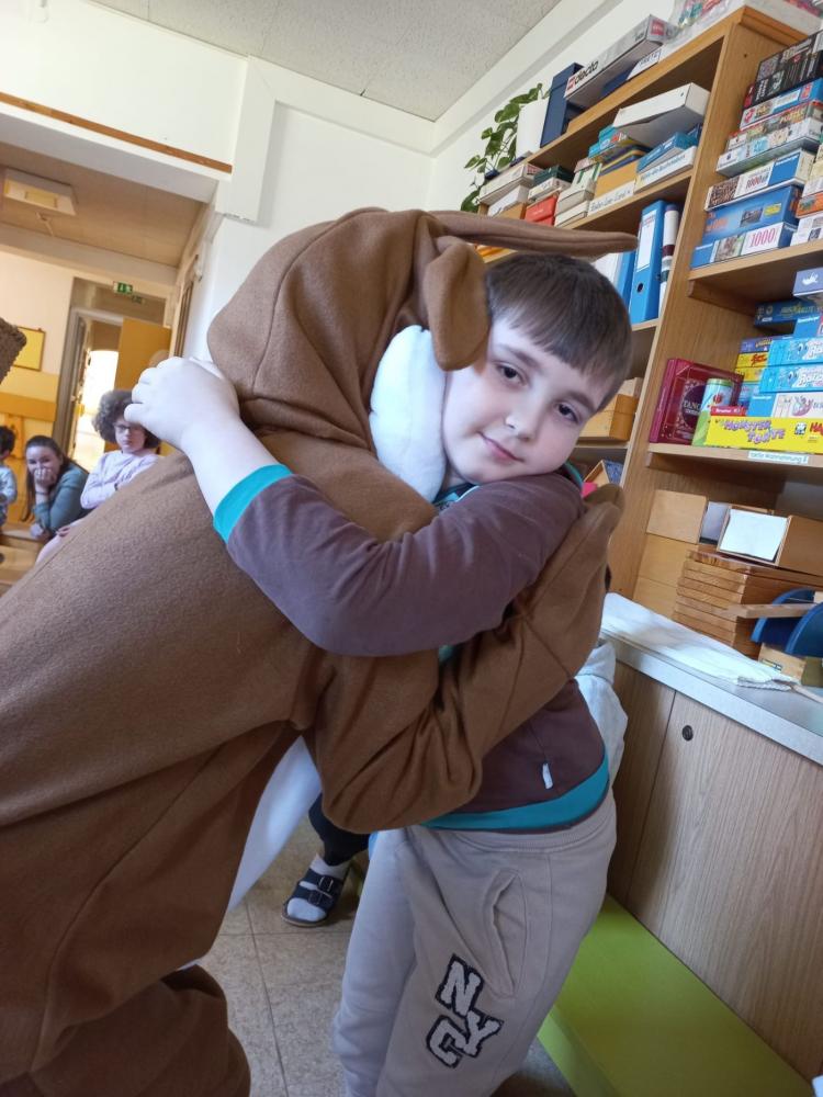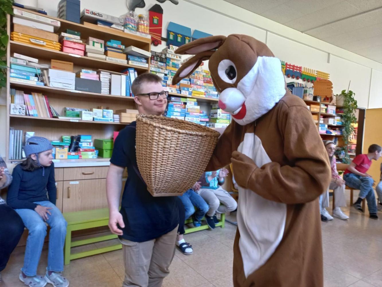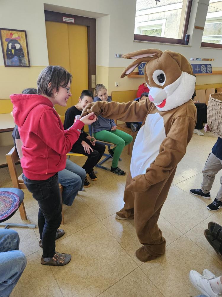 Mit einem Korb voller bunter Eier überraschte er jedes Kind – und bevor wir uns versahen, war er auch schon wieder verschwunden. Wahrscheinlich hatte er noch viele weitere Osterüberraschungen zu verteilen.