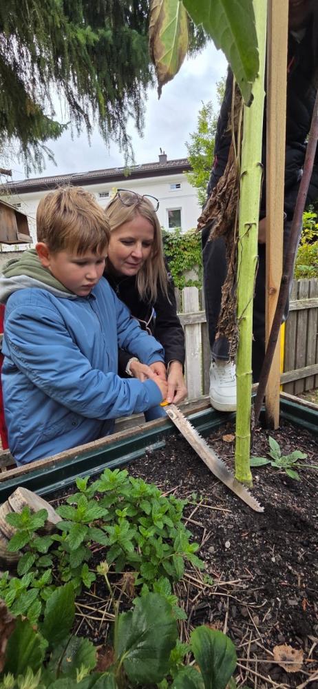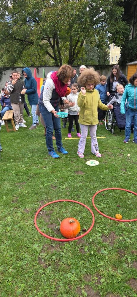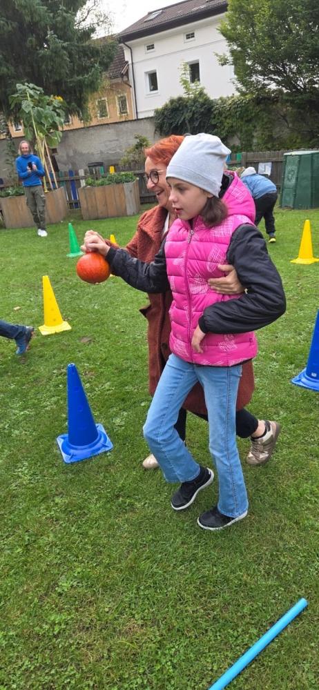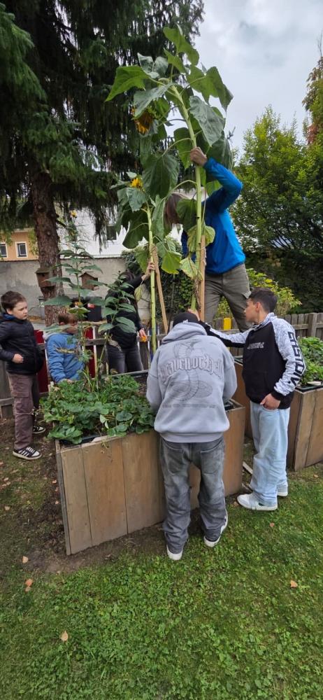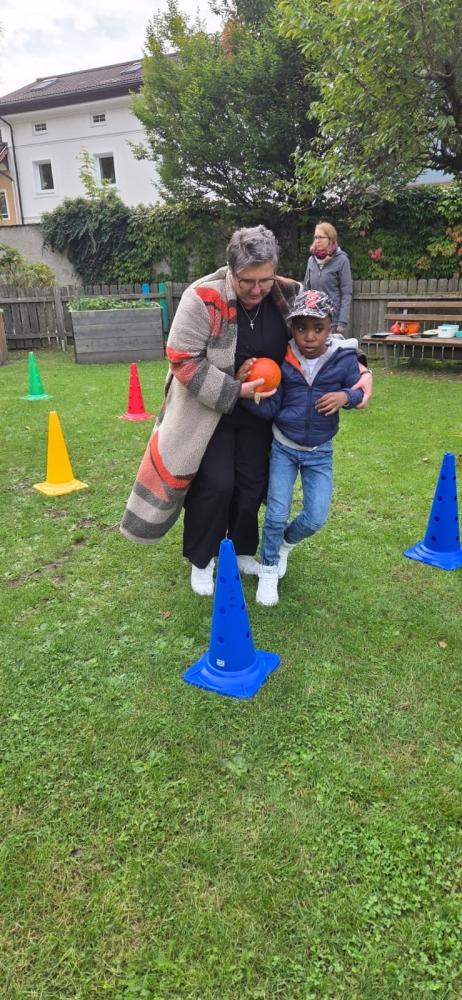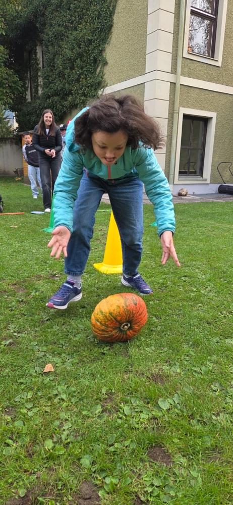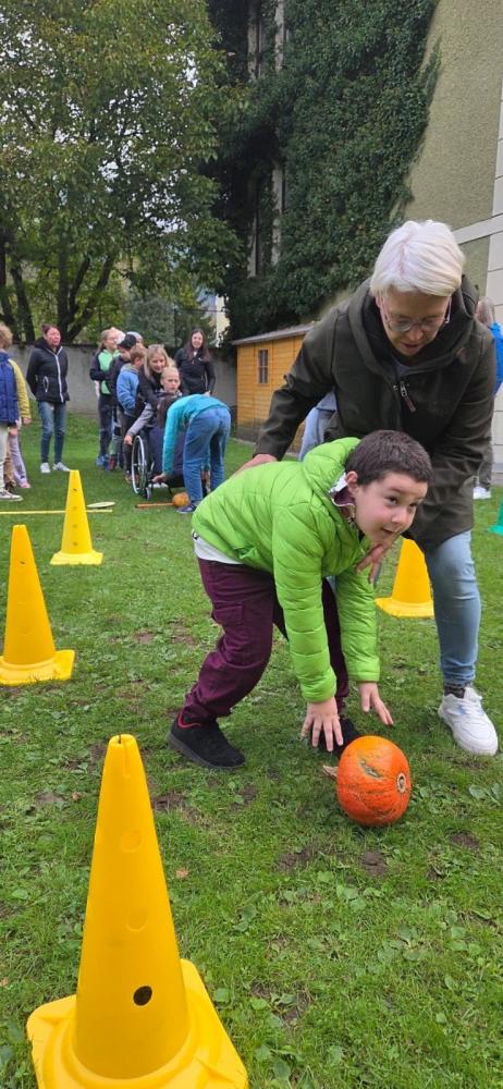 Rund um das Thema Kürbis wurden viele lustige Spiele gespielt, bei denen Geschicklichkeit und Teamgeist gefragt waren. Besonders spannend war auch die Wahl der größten Sonnenblume. Mit viel Begeisterung wurde geschätzt, gemessen, verglichen und gestaunt: Die Siegerin erreichte eine stolze Höhe von 3,80 m!