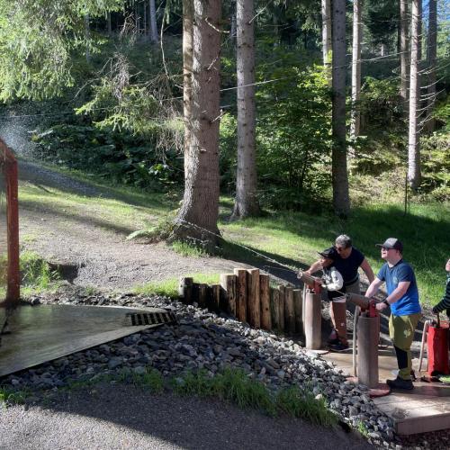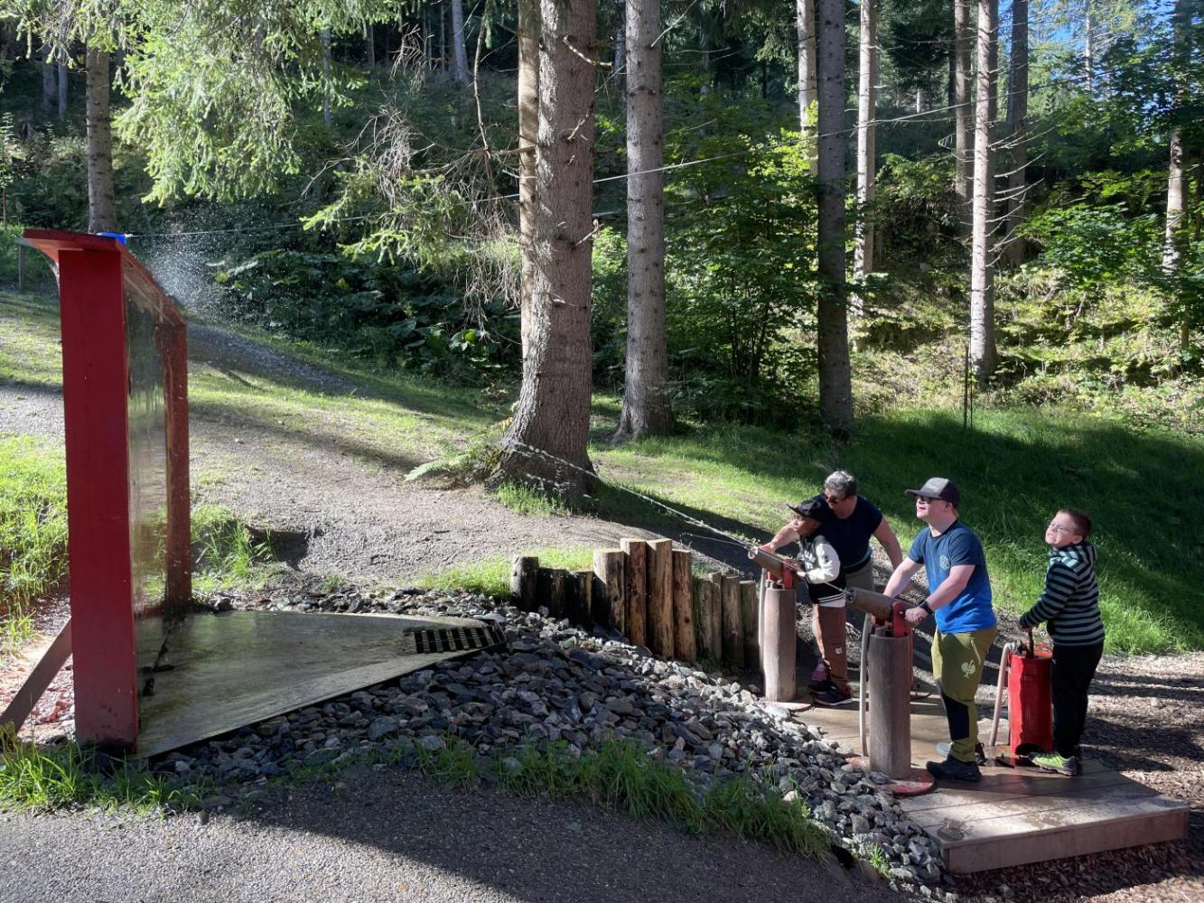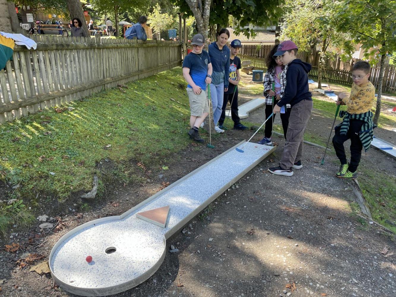 Nach einer kurzen Stärkung erwartete uns dort ein abwechslungsreiches Programm: Rutschen, Bällebad, Wichtelschule, Lehrpfad, Minigolf, Wasserspiele und viele weitere Stationen sorgten für einen fröhlichen und erlebnisreichen Vormittag. Zum Mittagessen wurden alle mit Würsteln und Semmeln verköstigt, bevor wir den Nachmittag noch einmal spielerisch genießen konnten.